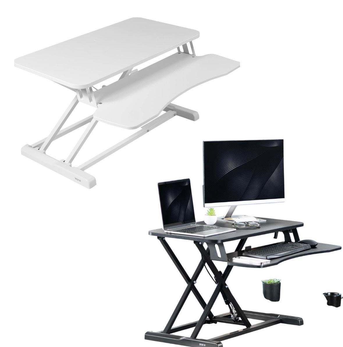 3pc - TechOrbits 37" white sit stand desktop workstation, VIVO 32" black desk risers DESK-V000K x2 (refurbished in boxes) total lot retail $459.99