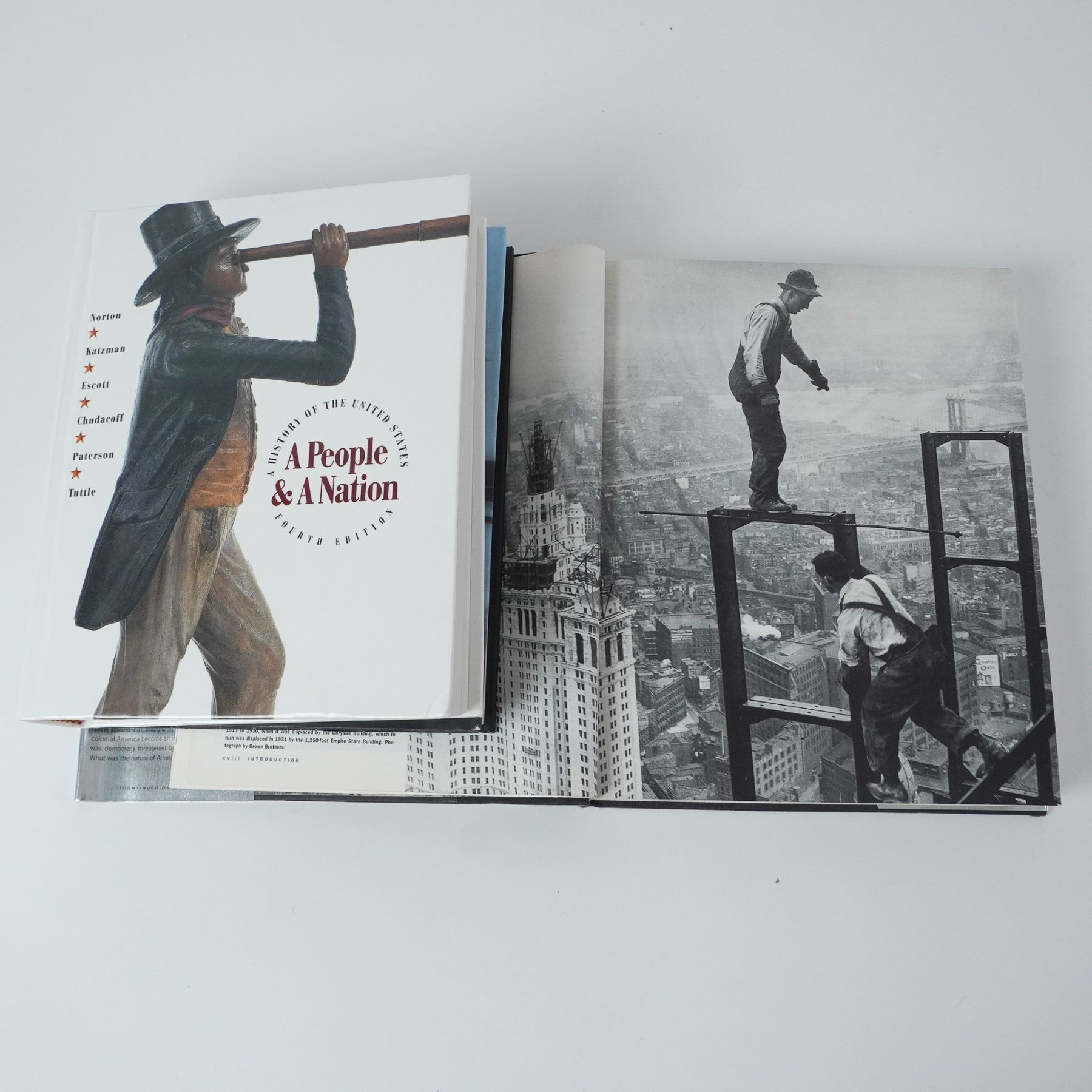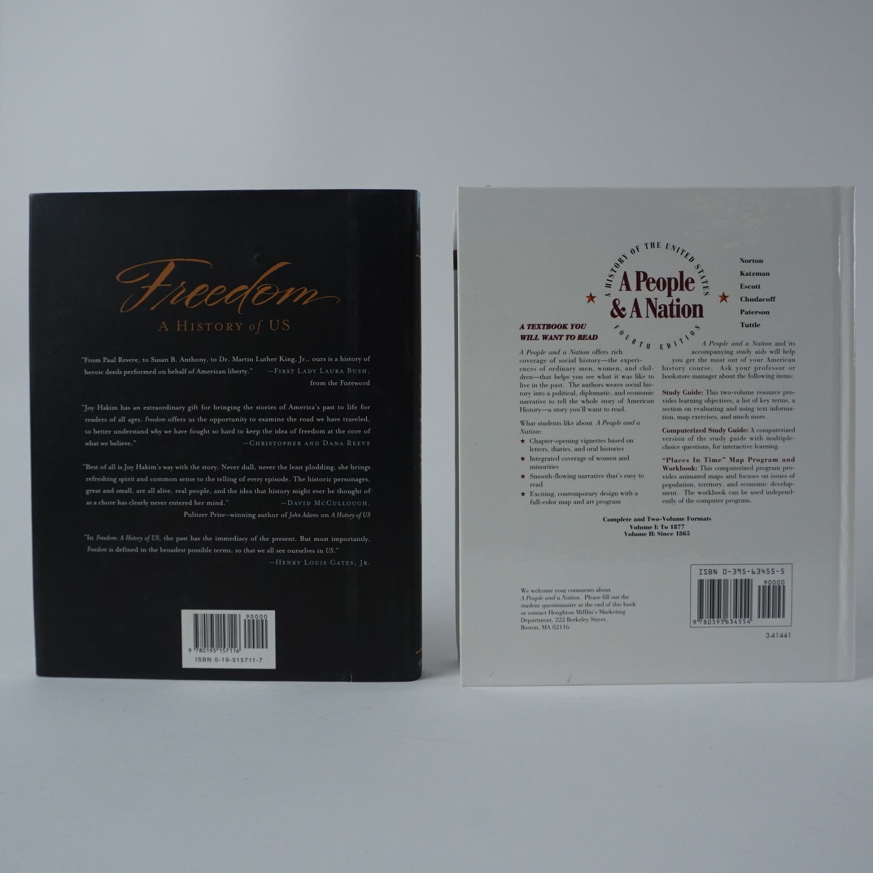 This collection includes three hardcover books that explore different aspects of U.S. history. A People & A Nation: A History of the United States (Fourth Edition), authored by Norton, Katzman, Escott, Chudacoff, Paterson, and Tuttle, provides a comprehensive analysis of American history with scholarly insights. Freedom: A History of US by Joy Hakim, published by Oxford University Press, offers a compelling narrative on the evolution of freedom in the United States, presenting key moments and figures that shaped the nation. The American Century by Harold Evans examines the major events and influential personalities that defined Americas role in the 20th century. This set is an excellent resource for historians, students, and collectors interested in the nations past. Largest book measures 11.5"H.