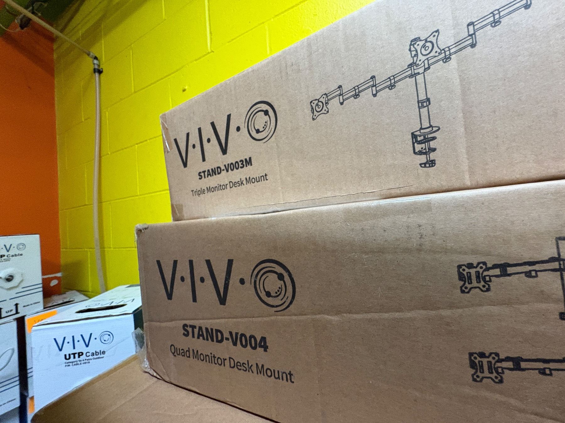 3pc - VIVO V003M triple monitor desk mount, V004 quad monitor desk mount & V003P triple monitor desk stand (refurbished in boxes) total lot retail $289.99