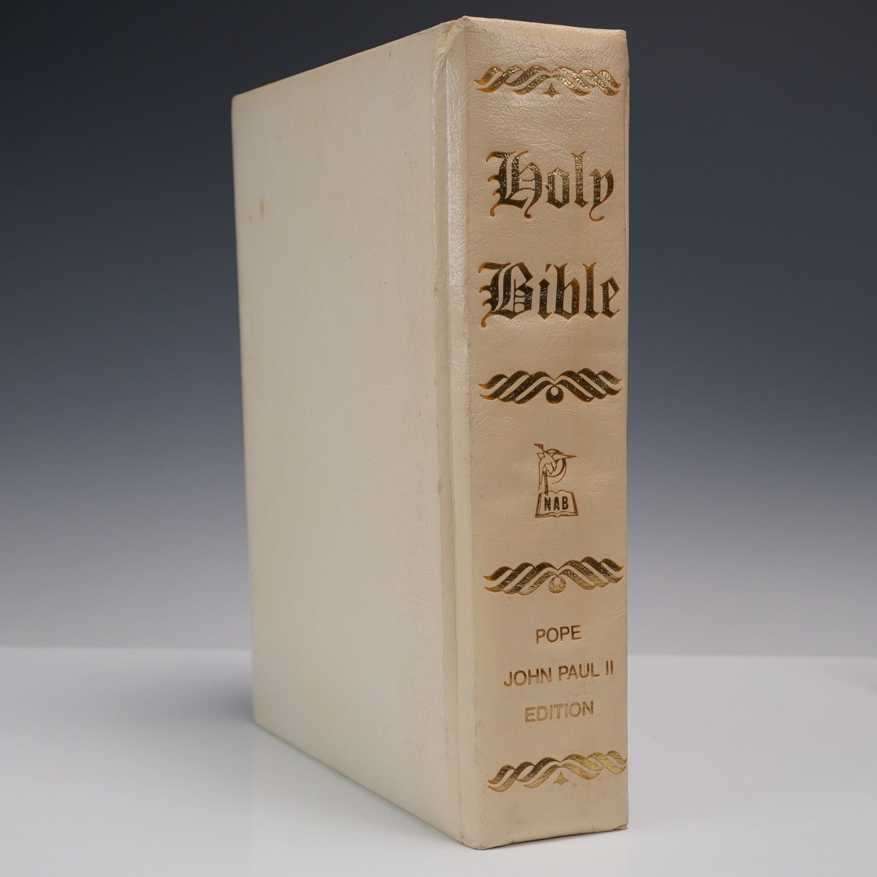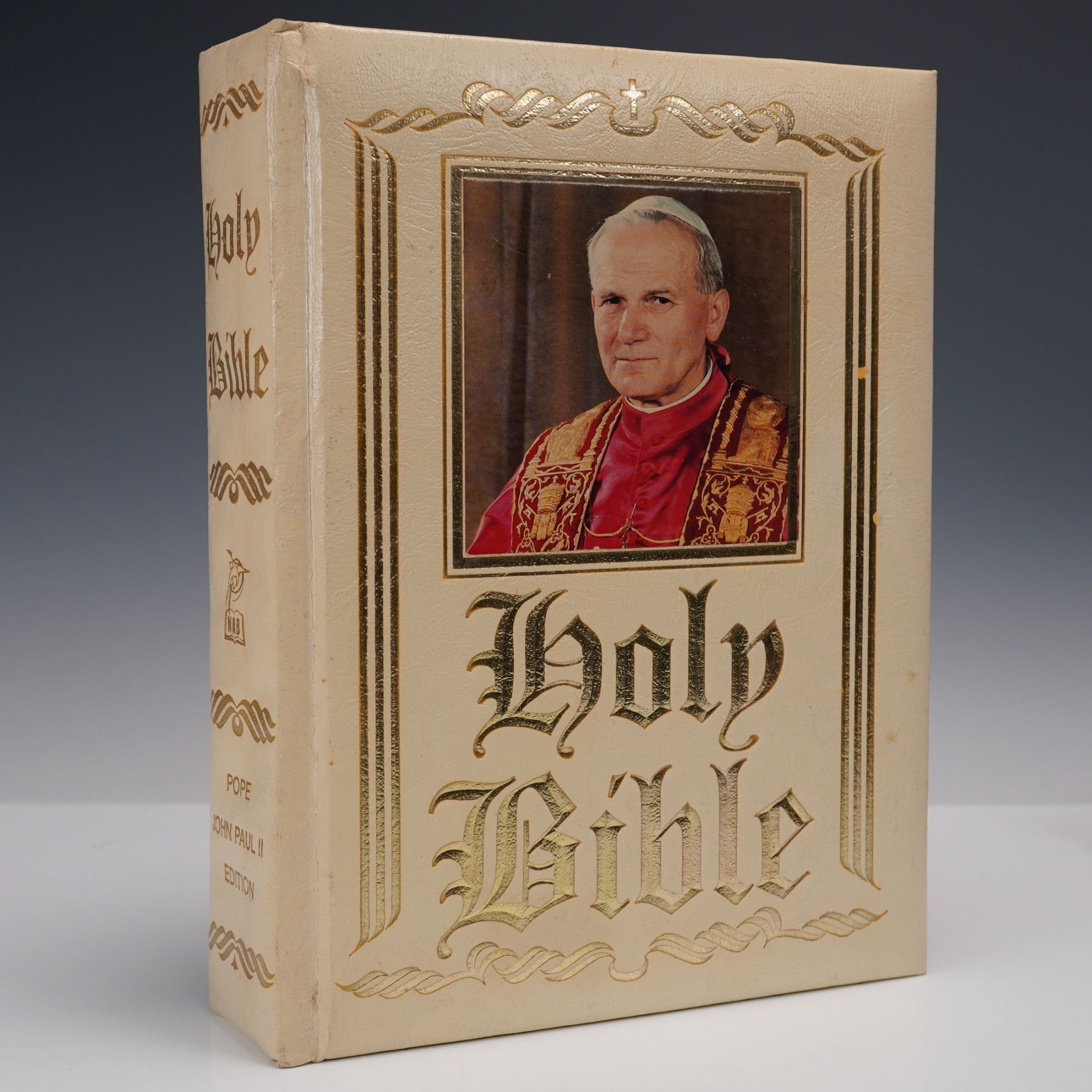 3pc Vintage Holy Bible, Pope John Paul II Edition Bible, and Wall Decor