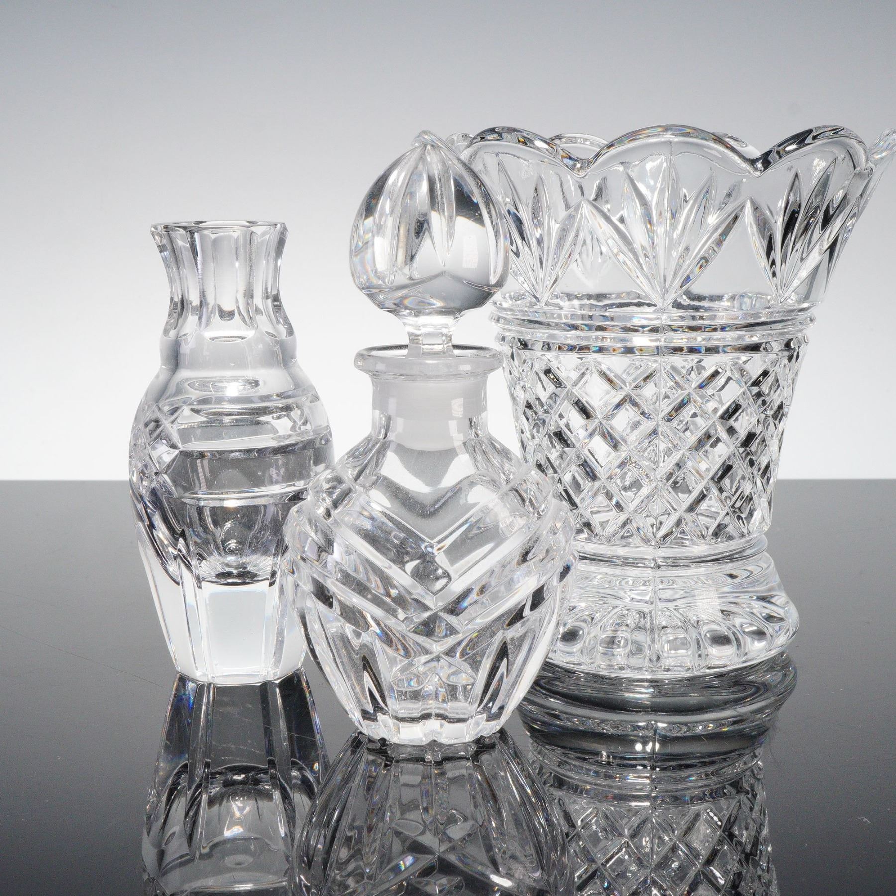 3pc Waterford, Rogaska, and Pressed Crystal Vases and Perfume Bottle