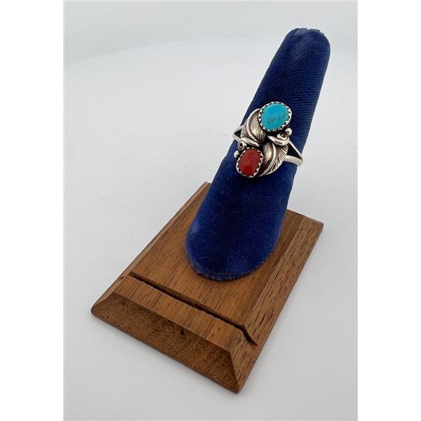 Navajo Sterling Silver Turquoise Coral Ring457 - Navajo Sterling Silver Turquoise Coral Ring