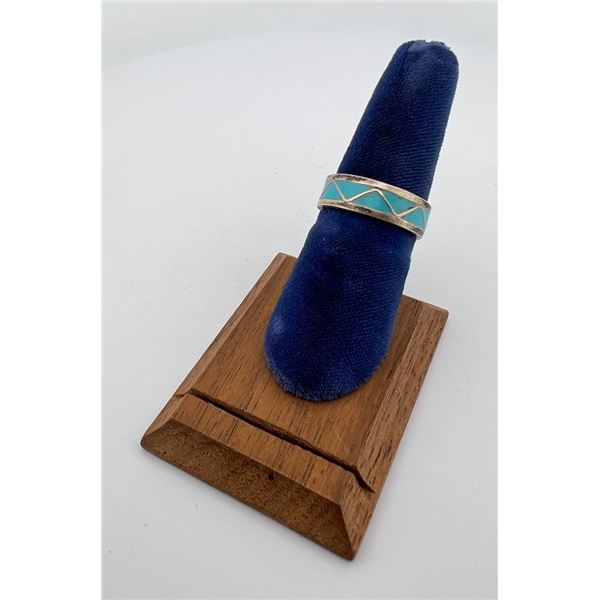 Zuni Sterling Silver Turquoise Inlay Ring462 - Zuni Sterling Silver Turquoise Inlay Ring