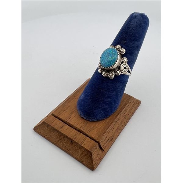 Navajo Sterling Silver Blue Fire Opal Ring474 - Navajo Sterling Silver Blue Fire Opal Ring