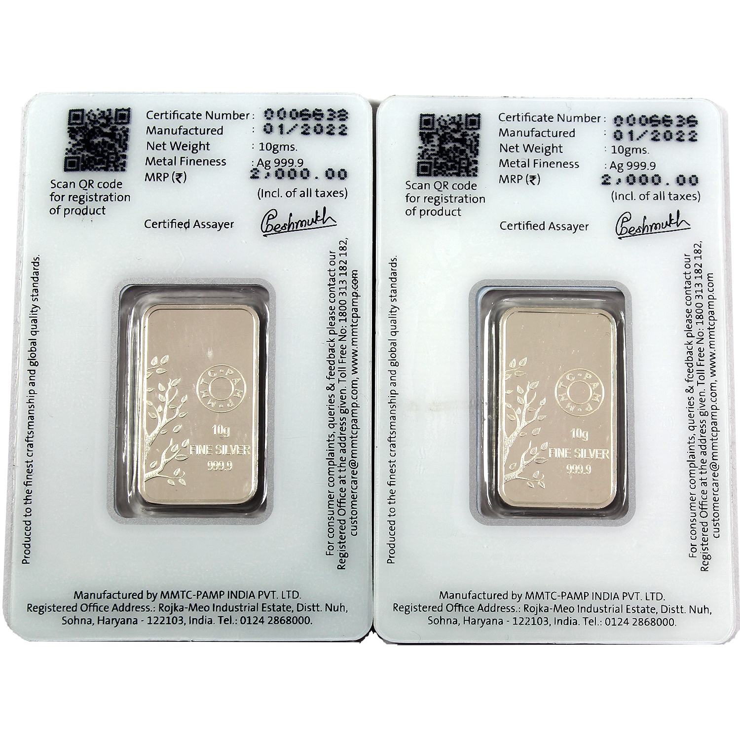 2x 10g MMTC-PAMP Banyan Tree .9999 Fine Silver Bars in Assay Cards. 2pcs.  (Tax Exempt)