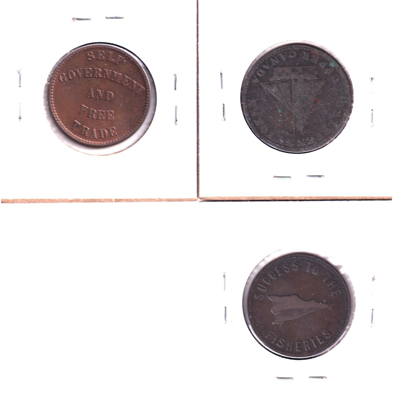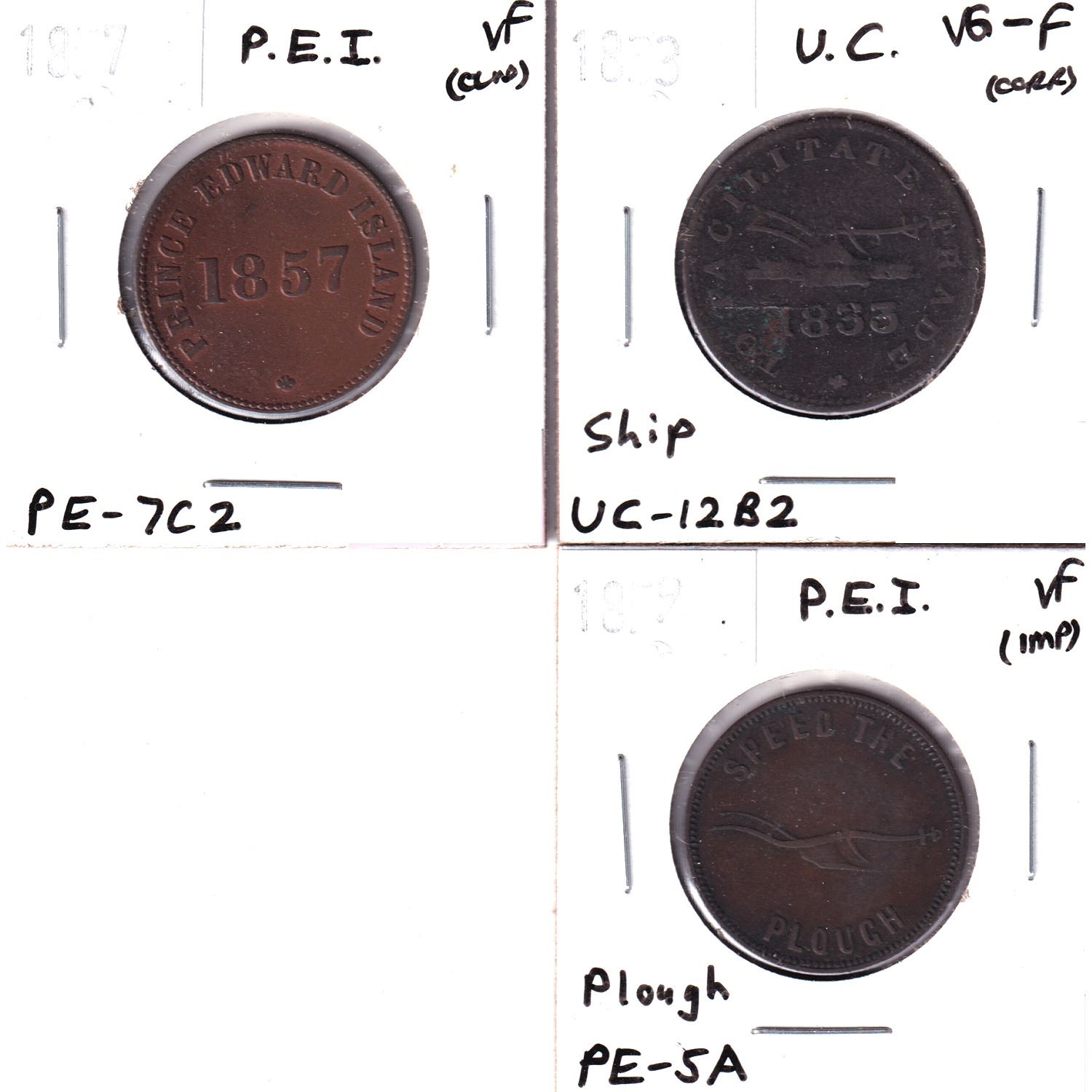 3x 1833-1859 Canada Bank Tokens. Lot Includes: UC-12B2 1833 Facilitate Trade Halfpenny VG-F (corr), PE-7C2 1857 George Davies Halfpenny VF (clnd), & PE-5A 1859 E.L. Lydiard 1-cent VF (imp). 3pcs.