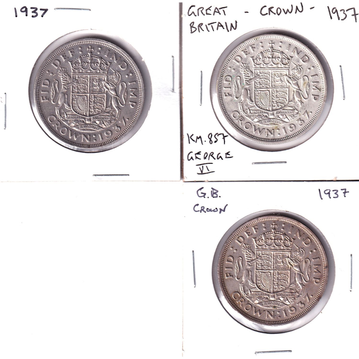 3x 1937 Great Britain George VI Crowns. 3pcs