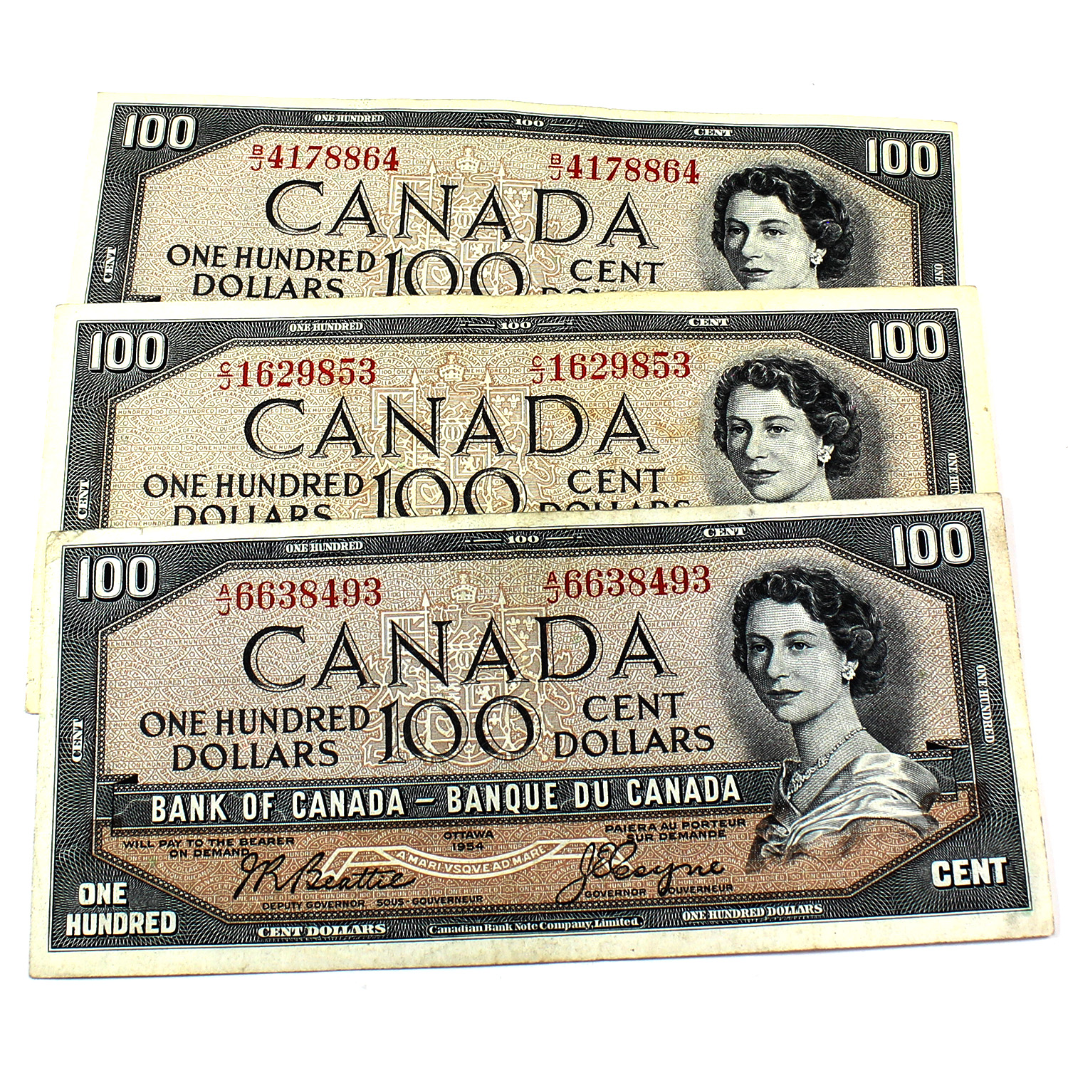 INCLUDES: BC-43a Beattie-Coyne SN: A/J6638493, BC-43b Beattie-Rasminsky SN: B/J4178864, & BC-43c Lawson-Bouey SN: C/J1629853. Sold as is; please see images for details. 3pcs.