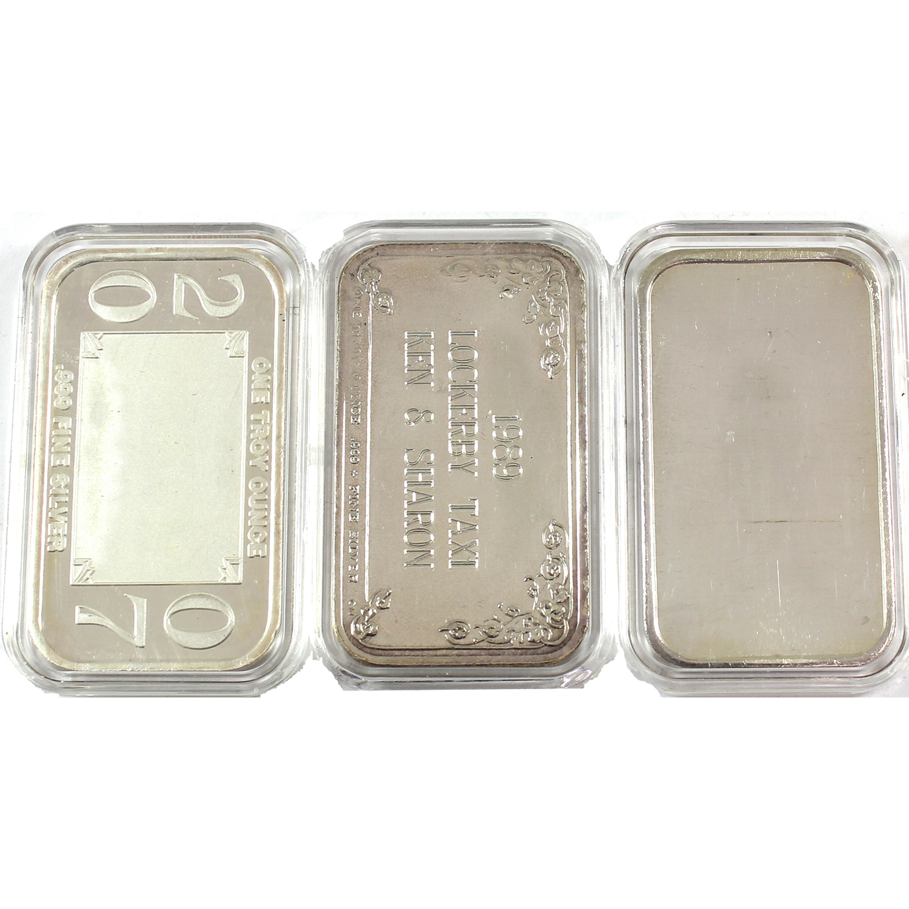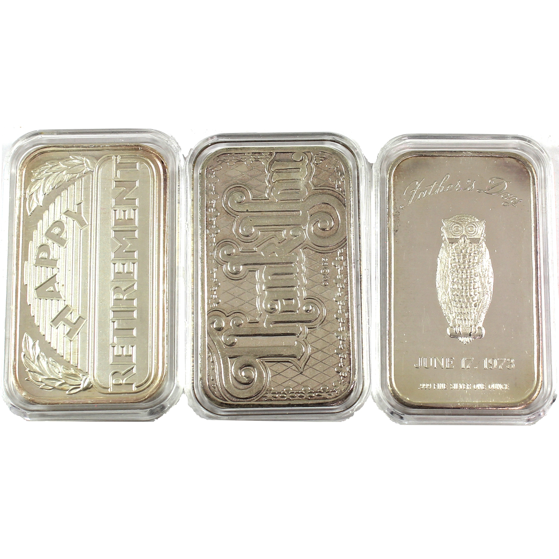 INCLUDES: California Crown Mint 1985 Thank You (Engraved: 1989/Lockerby Taxi/Ken & Sharon), Madison Mint 1973 Father's Day, & SilverTowne 2007 Happy Retirement. 3pcs. (Tax Exempt)