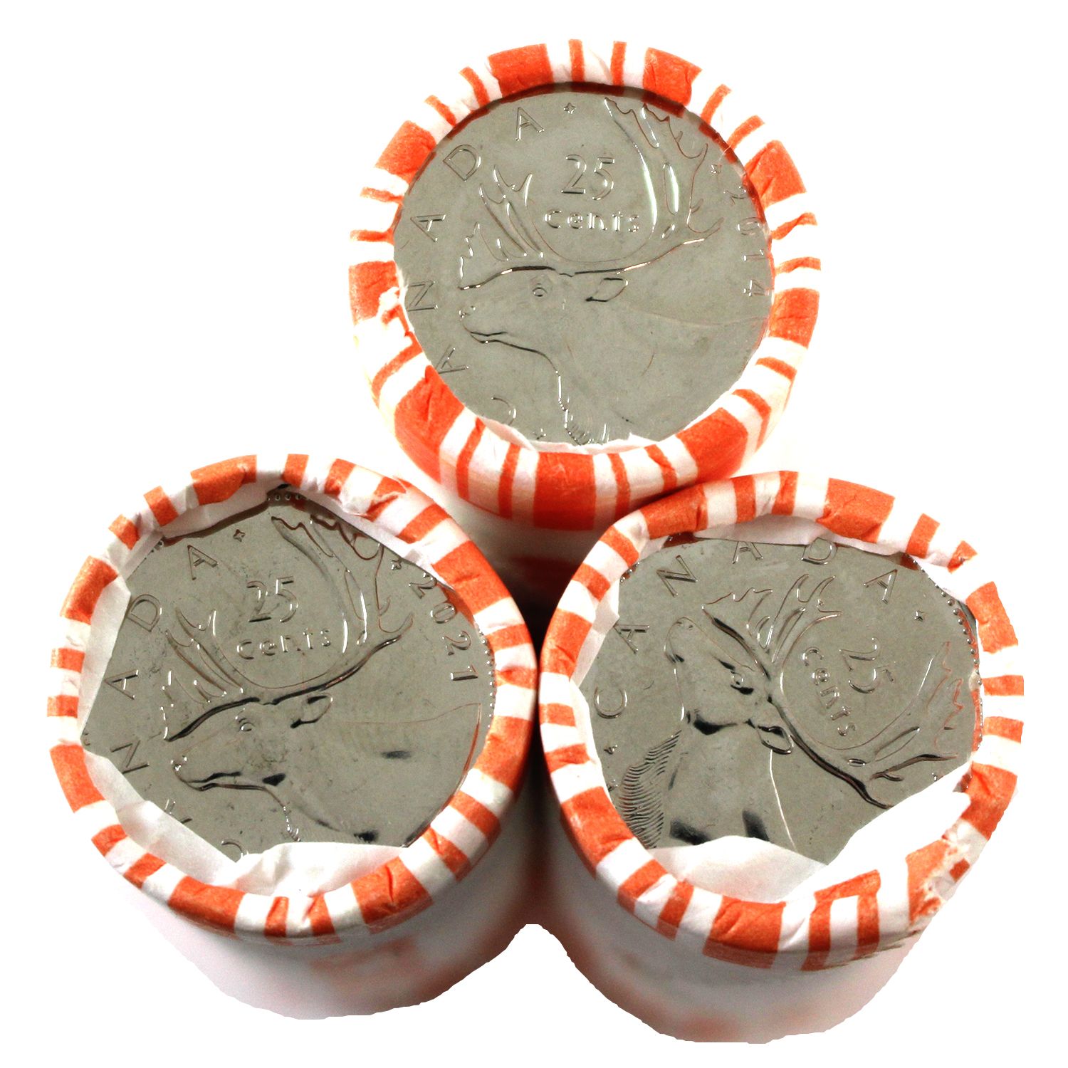 3x 25-cent 2014 Original Wrapped Roll of 40pcs. 3 Rolls.