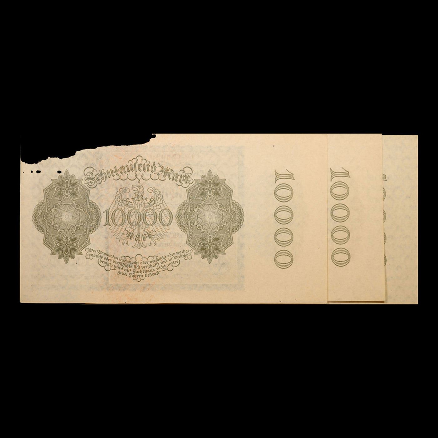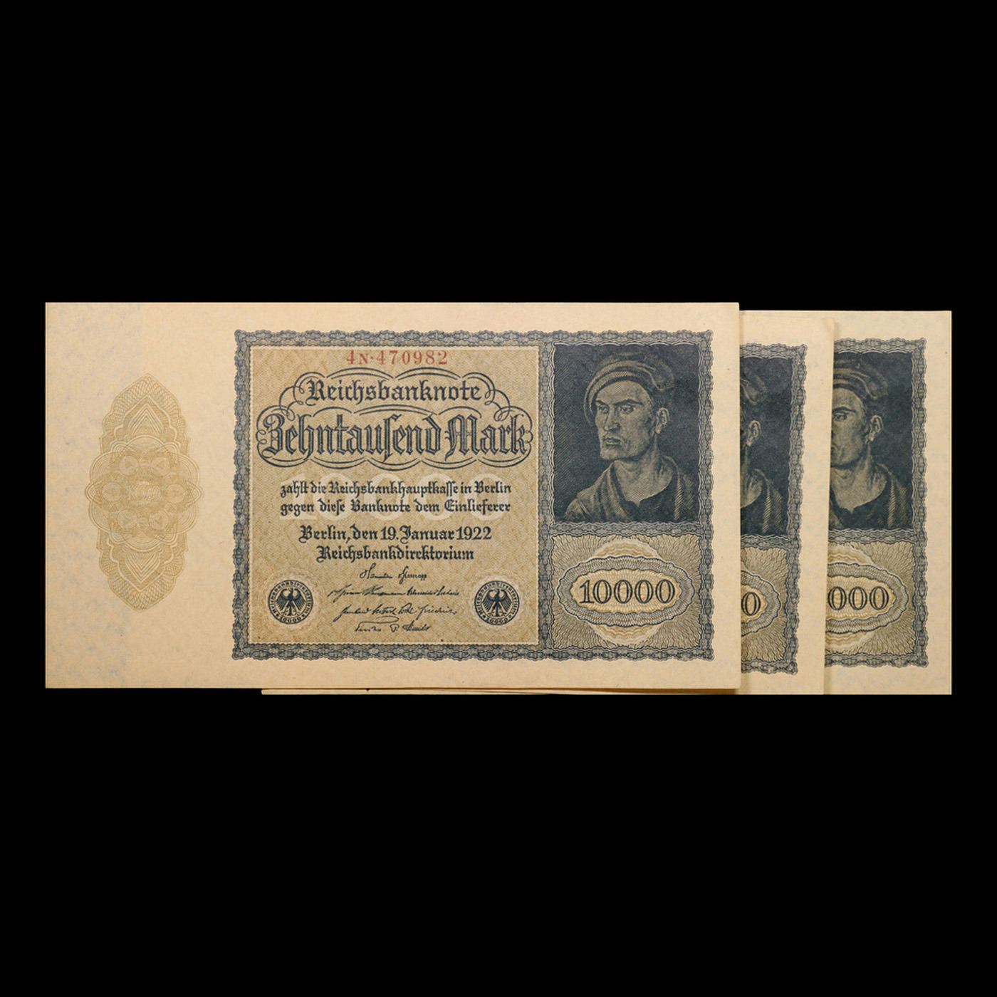 3x Consecutive 1922 Germany (Weimar) "Vampire" 10,000 Marks Post-WWI Hyperinflation Banknotes, All A