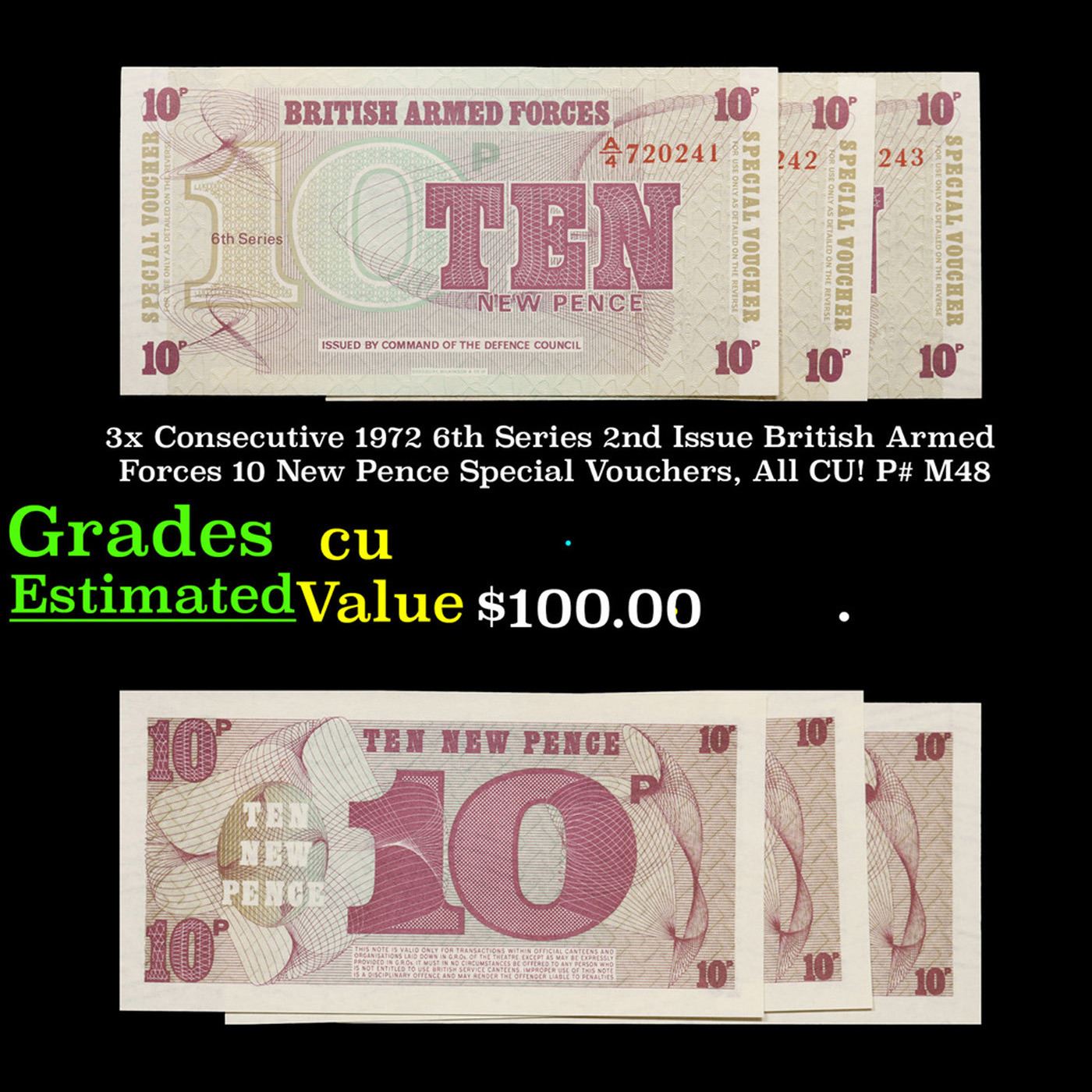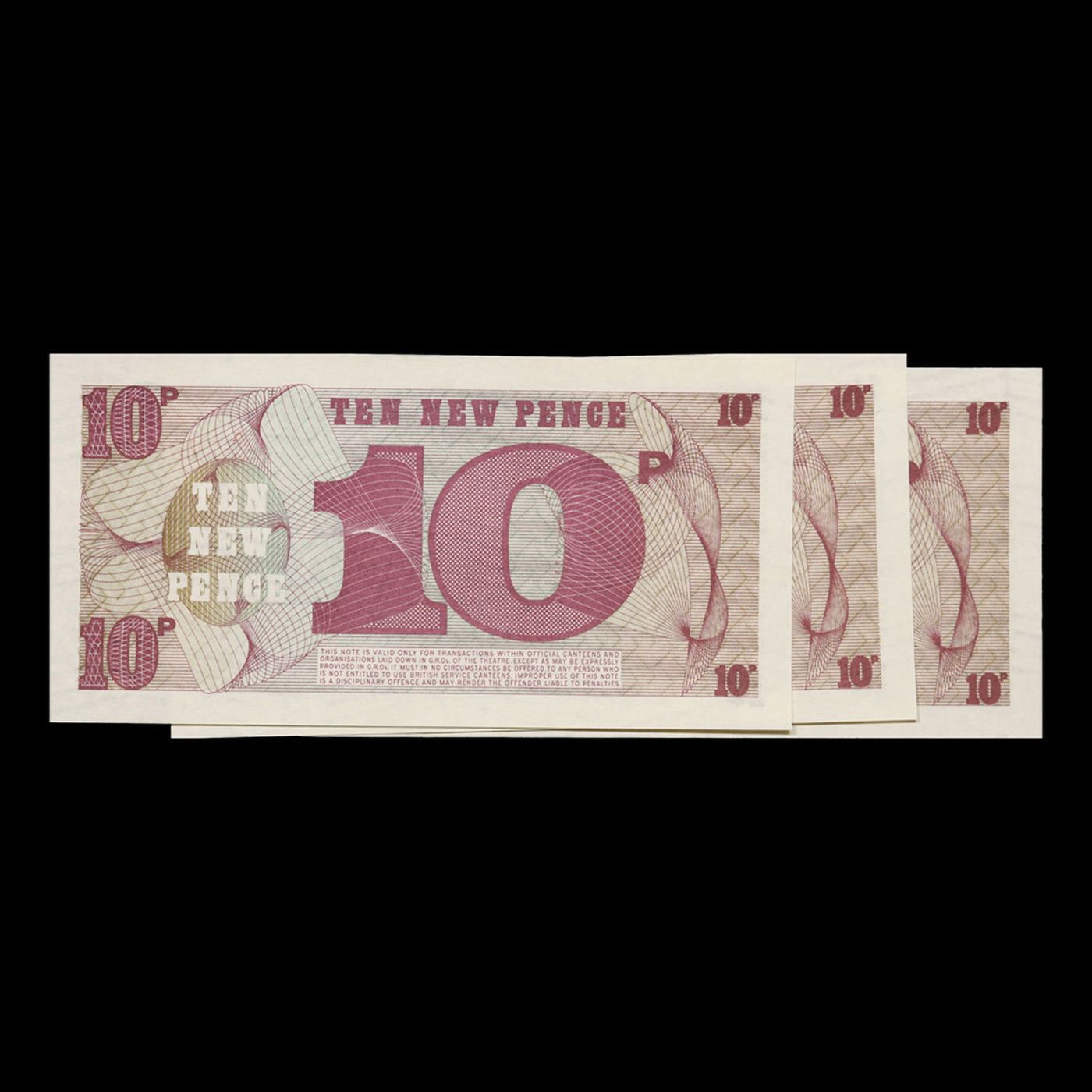 3x Consecutive 1972 6th Series 2nd Issue British Armed Forces 10 New Pence Special Vouchers, All CU! P# M48 Grades CU.