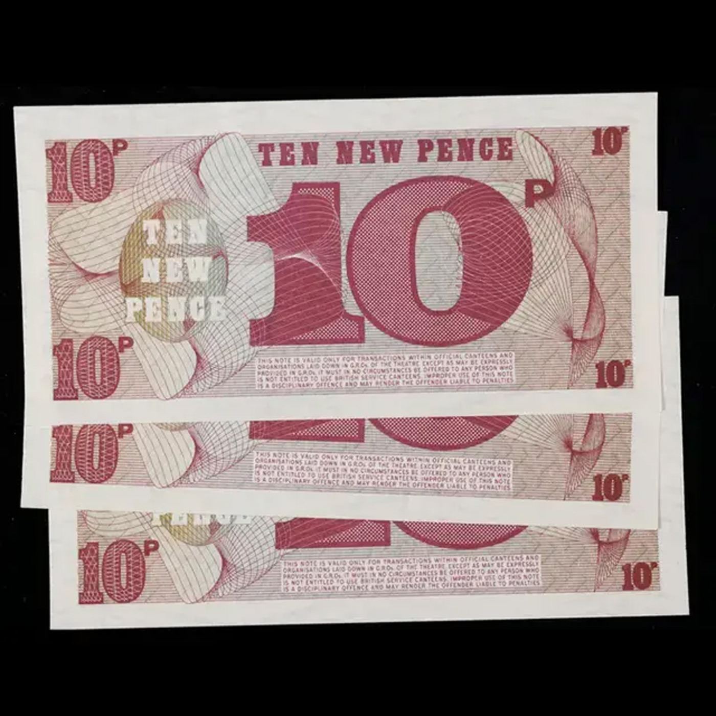 3x Consecutive 1972 6th Series 2nd Issue British Armed Forces 10 New Pence Special Vouchers, All CU!