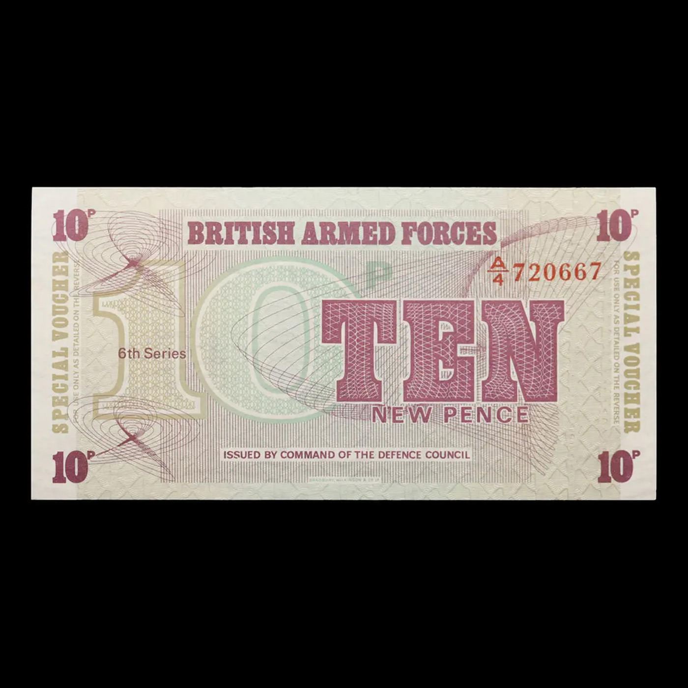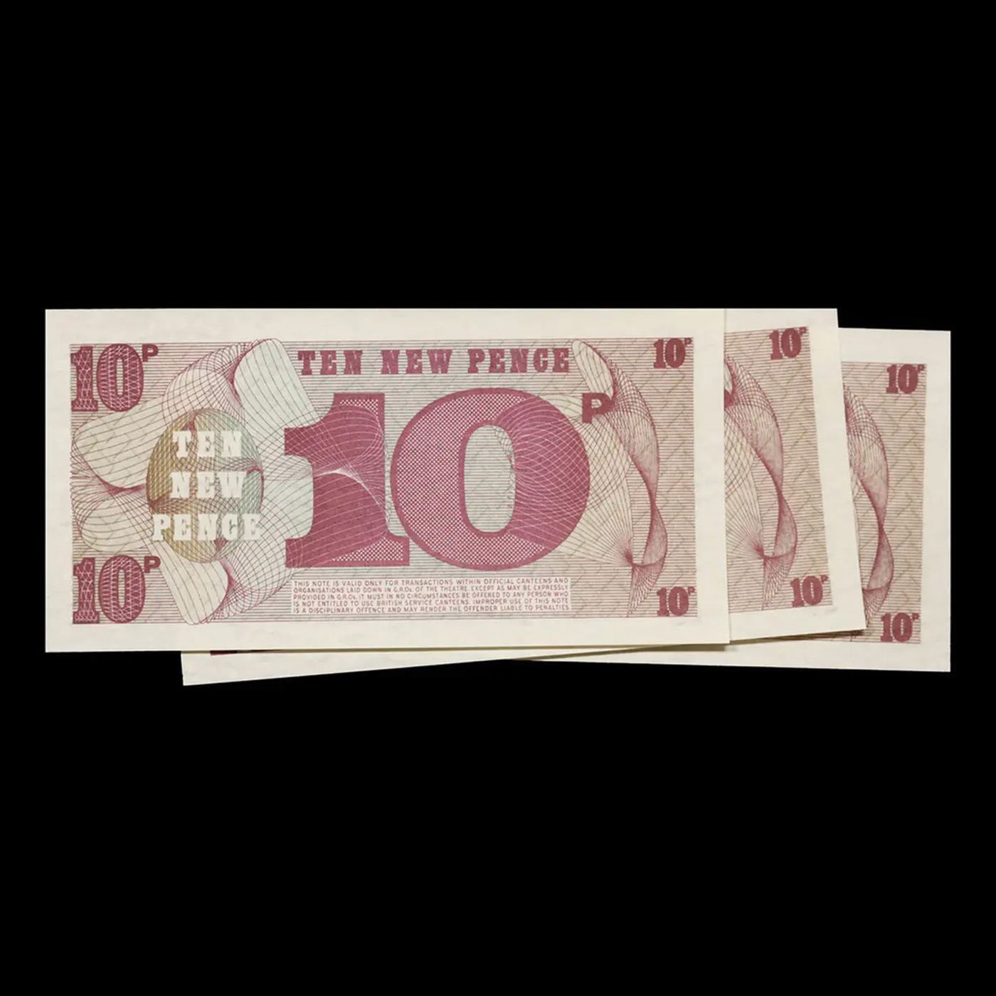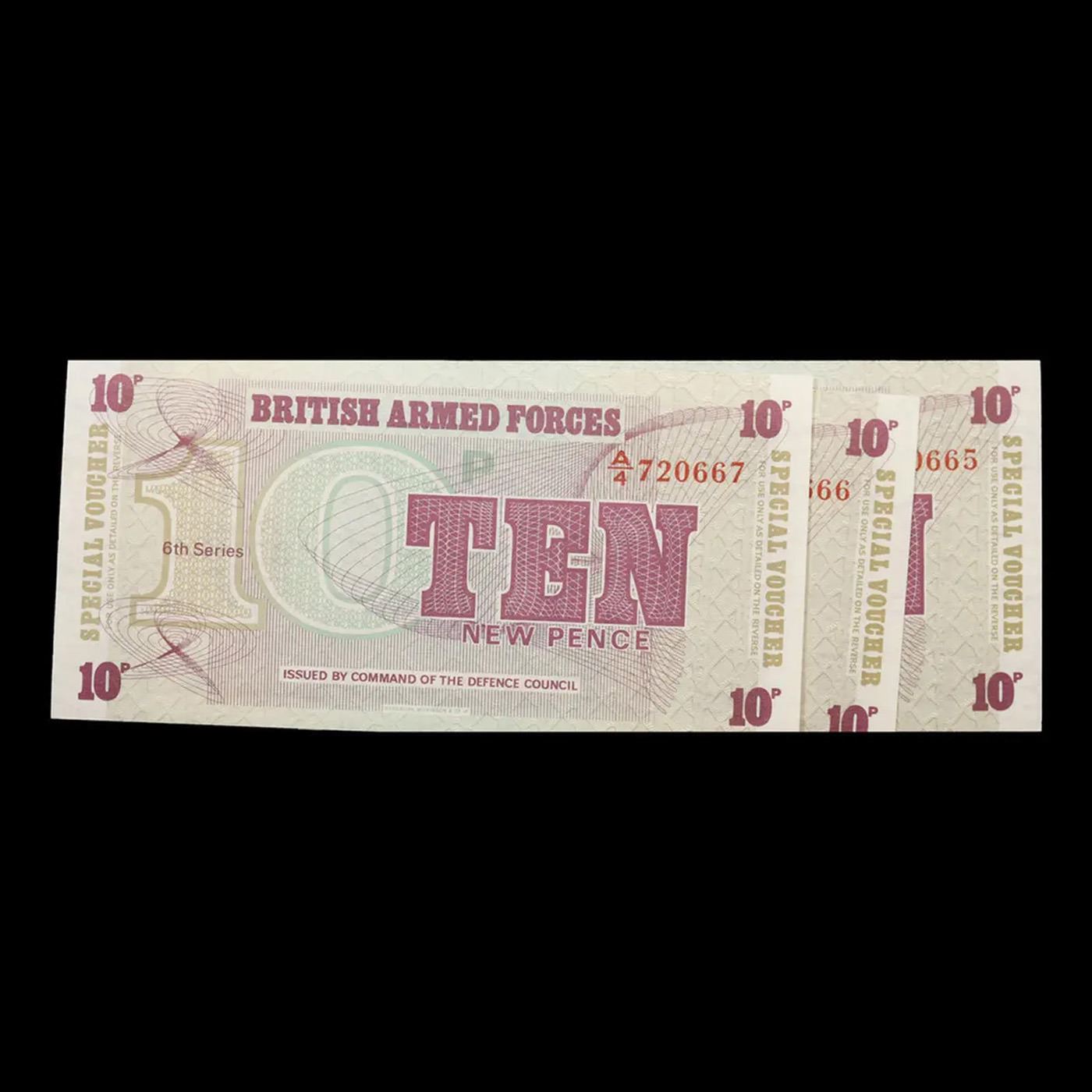 3x Consecutive 1972 6th Series 2nd Issue British Armed Forces 10 New Pence Special Vouchers, All CU! P# M48 Grades CU.