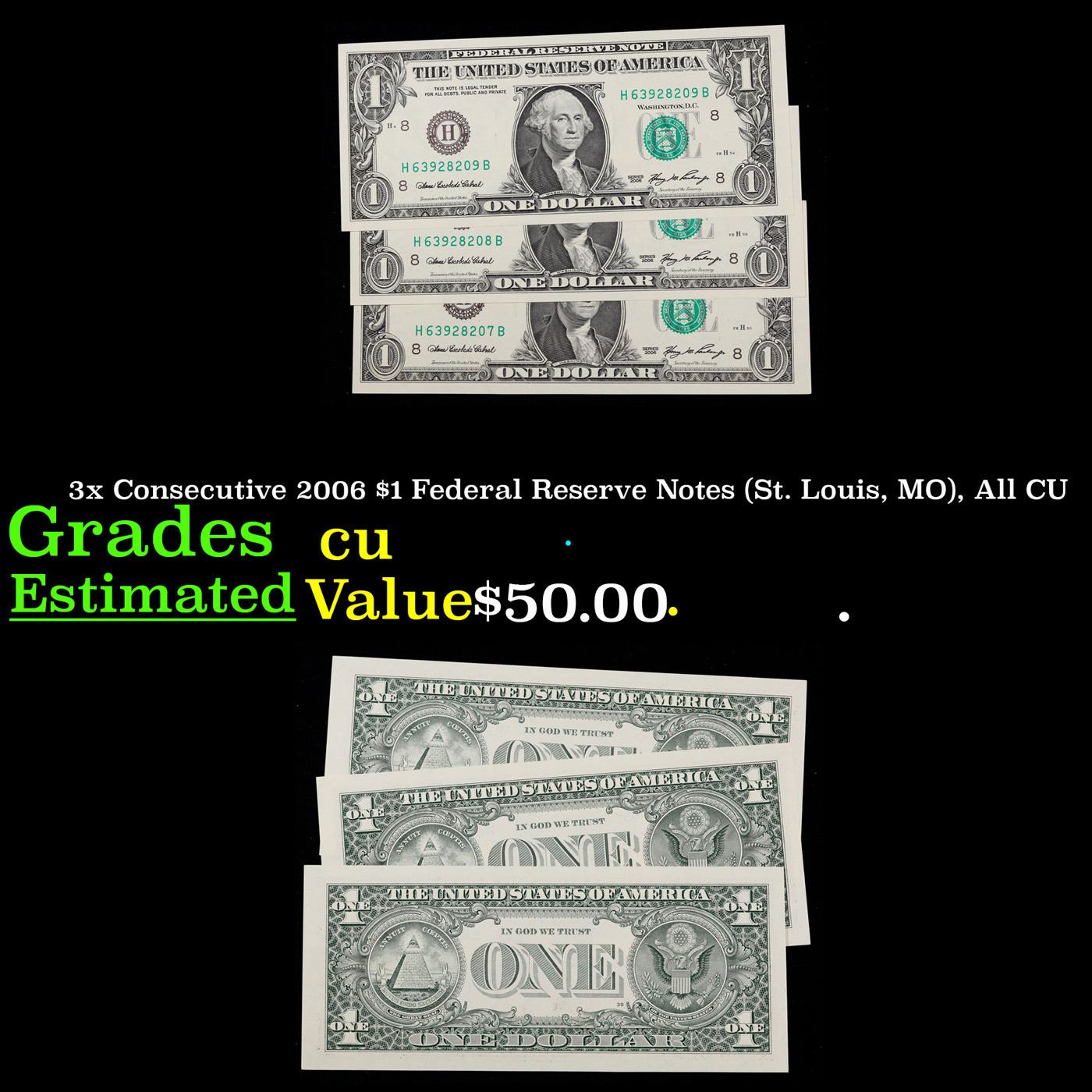 3x Consecutive 2006 $1 Federal Reserve Notes (St. Louis, MO), All CU Grades CU