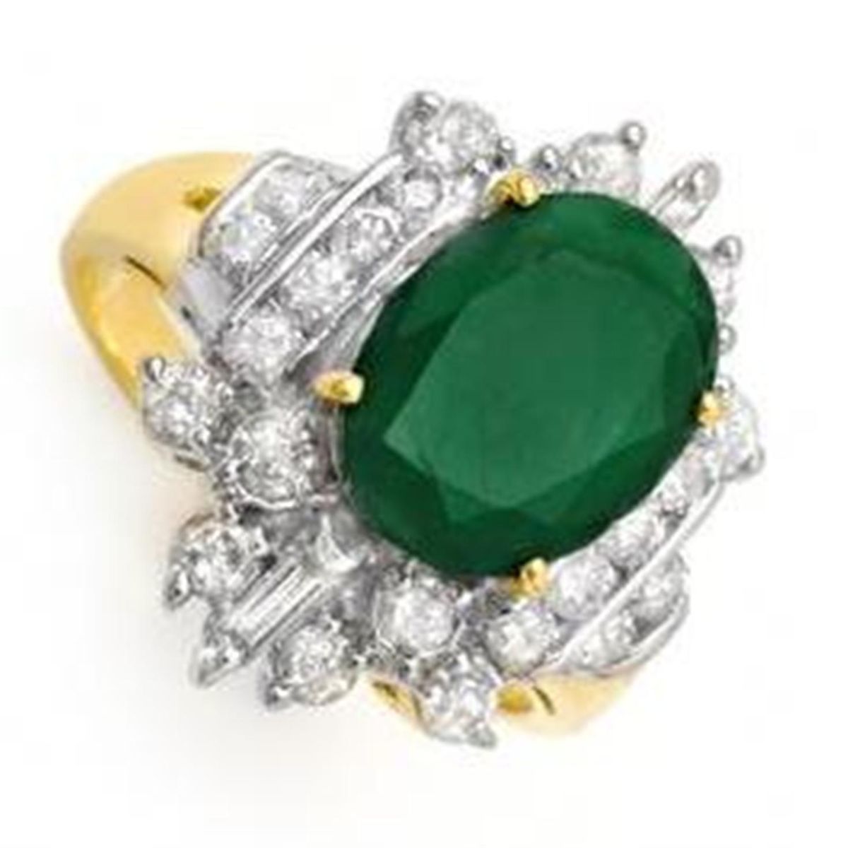 Diamond: 24 RD & BGT cut @ 1.0 ctw Clarity: SI-I Color: H-K Gemstone: Natural Emerald Gemstone color: GreenGemstone quality: Good-to-Very Good Gemstone Cut & Weight: 1 Oval cut @ 3.0 ctw Metal Purity & Color : 14K Gold-Yellow Gold weight: 6.10 grams Ring size (US): 7Dimension: Approx. 3/4" x 5/8"