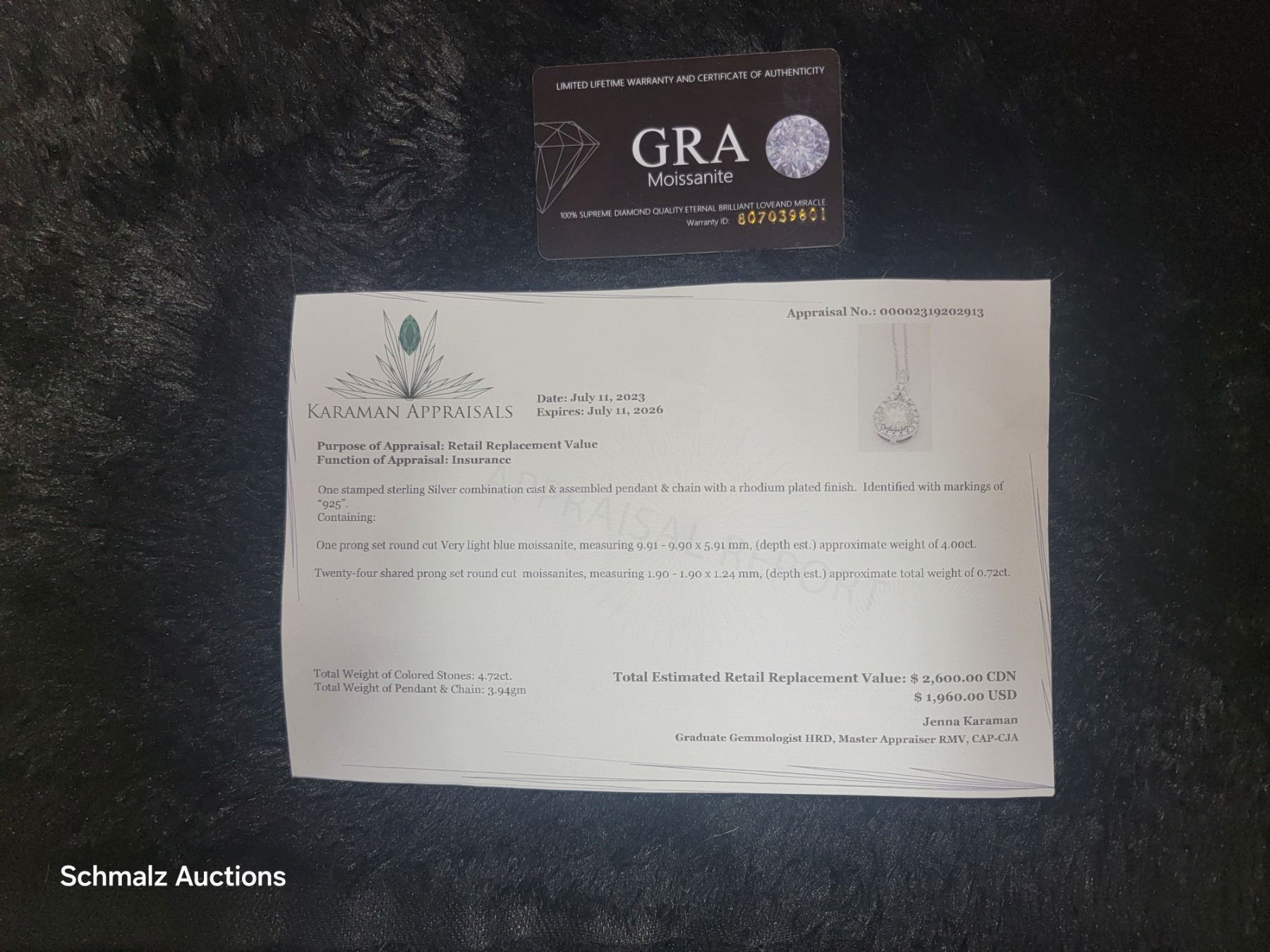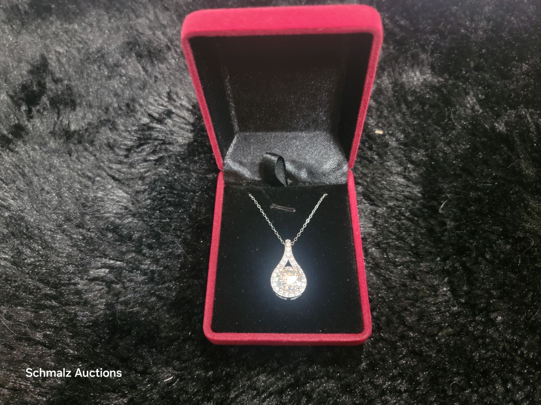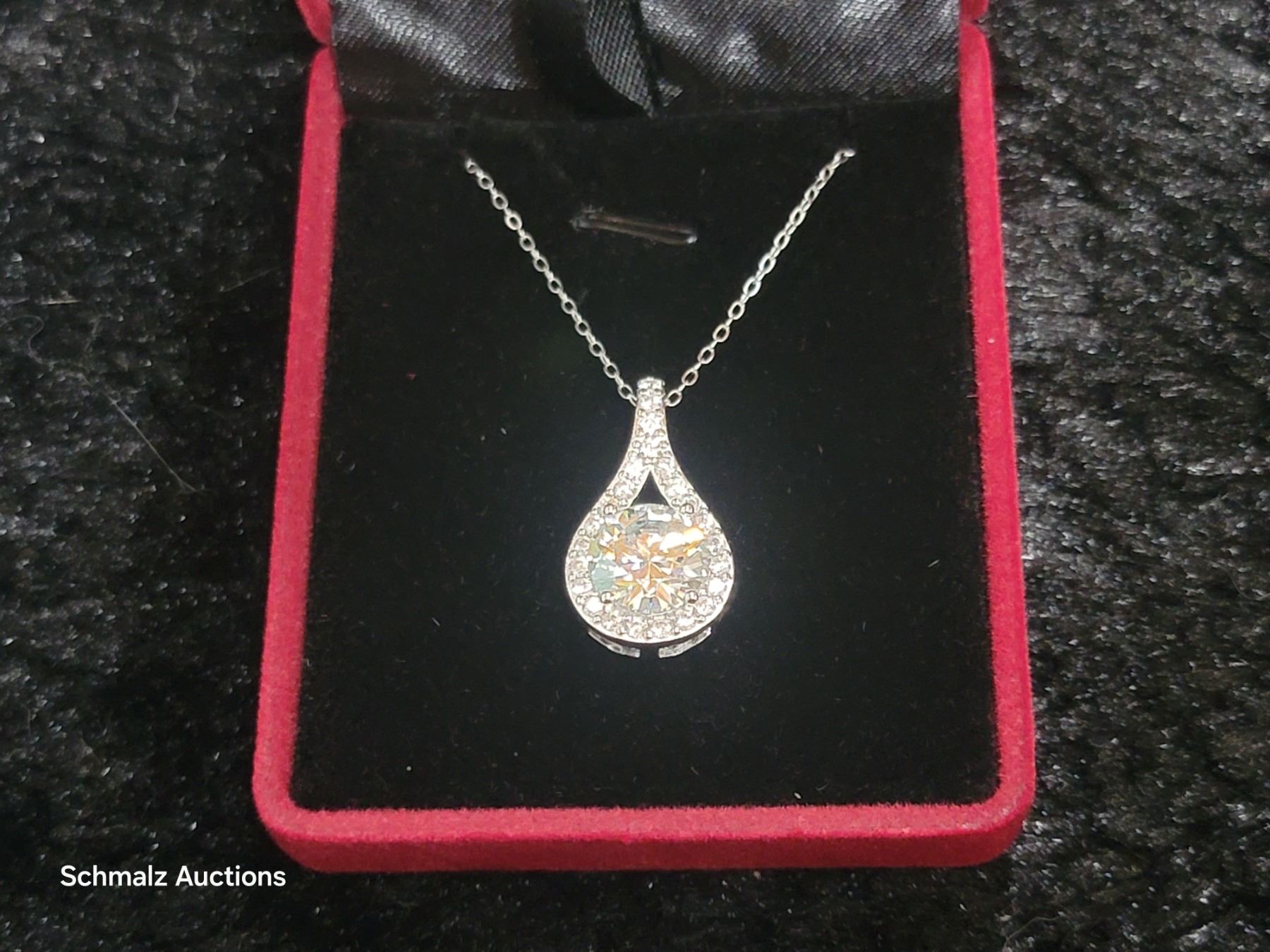 4.00 CT GRA CERTIFIED ROUND BRILLIANT CUT MOISSANITE STONE VVS D COLOR SET IN TEAR DROP PENDANT WITH 24 ROUND BRILLIANT CUT CUBIC ZIRCONIA SET IN 925 SILVER PENDANT RETAIL VALUE $2,600.00