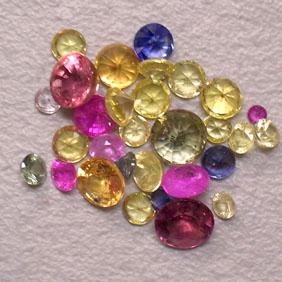 LOT OF MULTICOLOR ROUND SHAPED SAPPHIRES - DIFFERENT SIZES. THE LOT WEIGHTS 4 CTS. NATURAL INCLUSIONS VISIBLE.