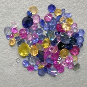 LOT OF MULTICOLOR ROUND SHAPED SAPPHIRES - DIFFERENT SIZES. THE LOT WEIGHTS 4 CTS. NATURAL INCLUSIONS VISIBLE.