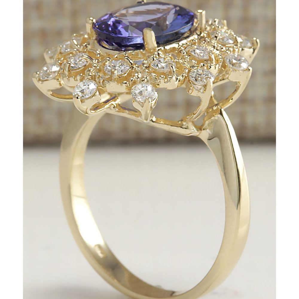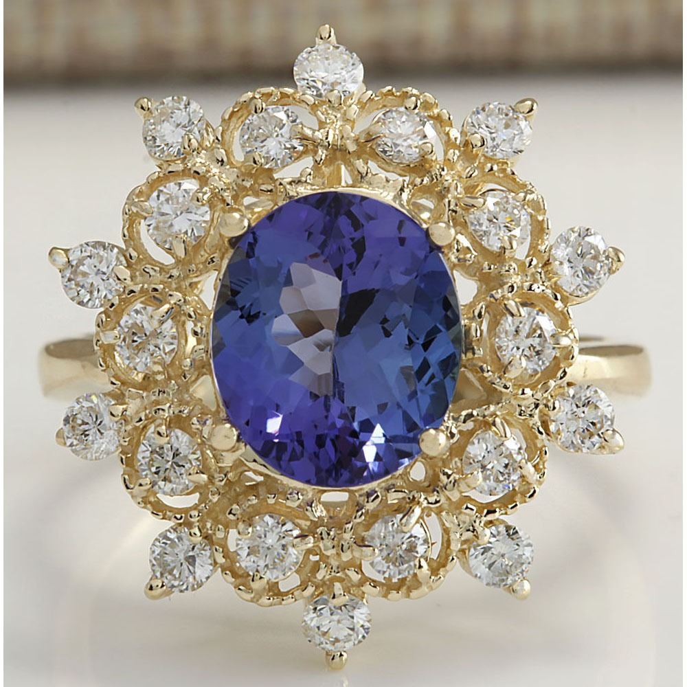 4.00 CTW Natural Blue Tanzanite And Diamond Ring In 14K Yellow Gold