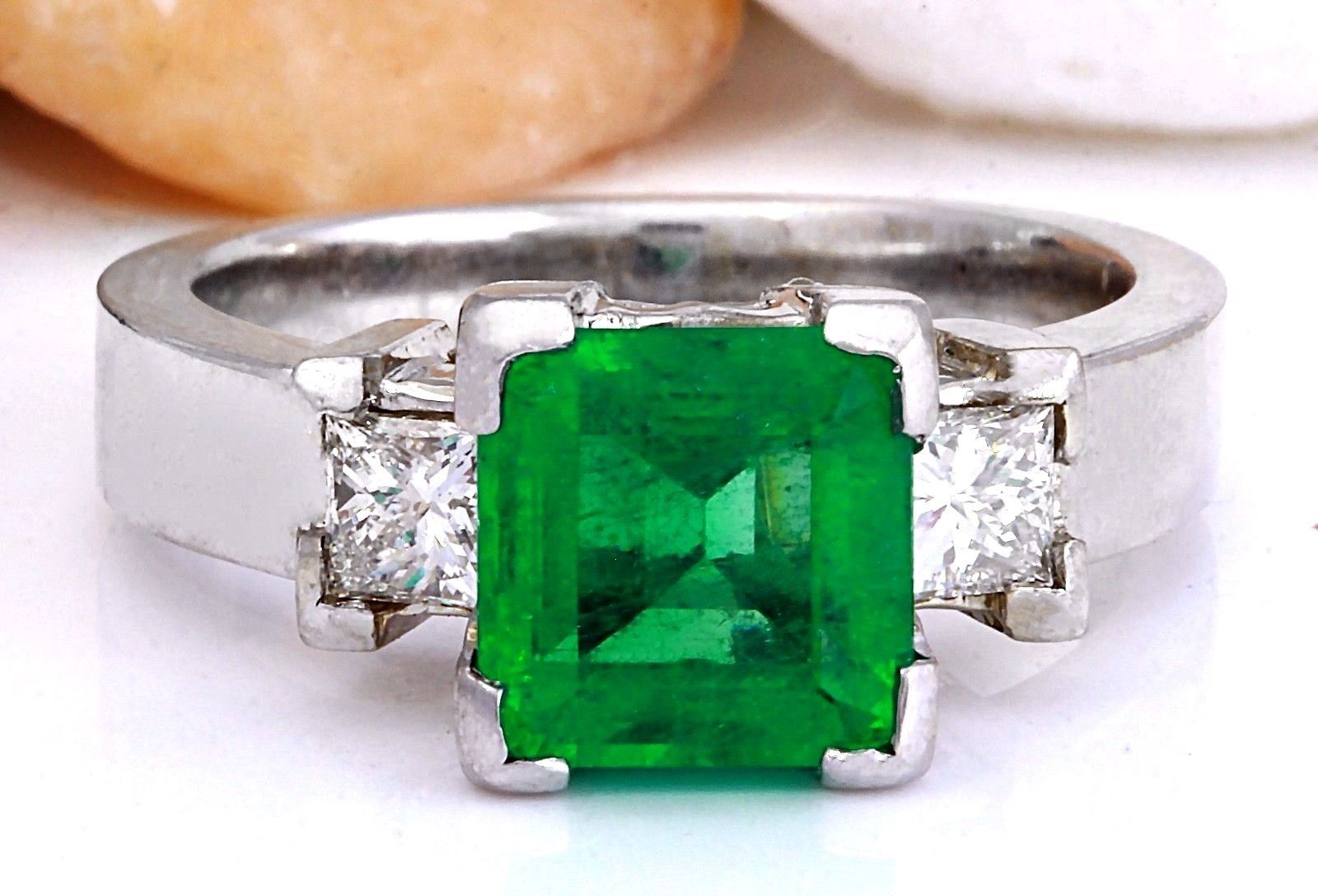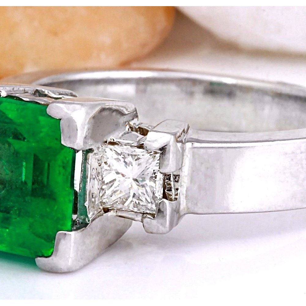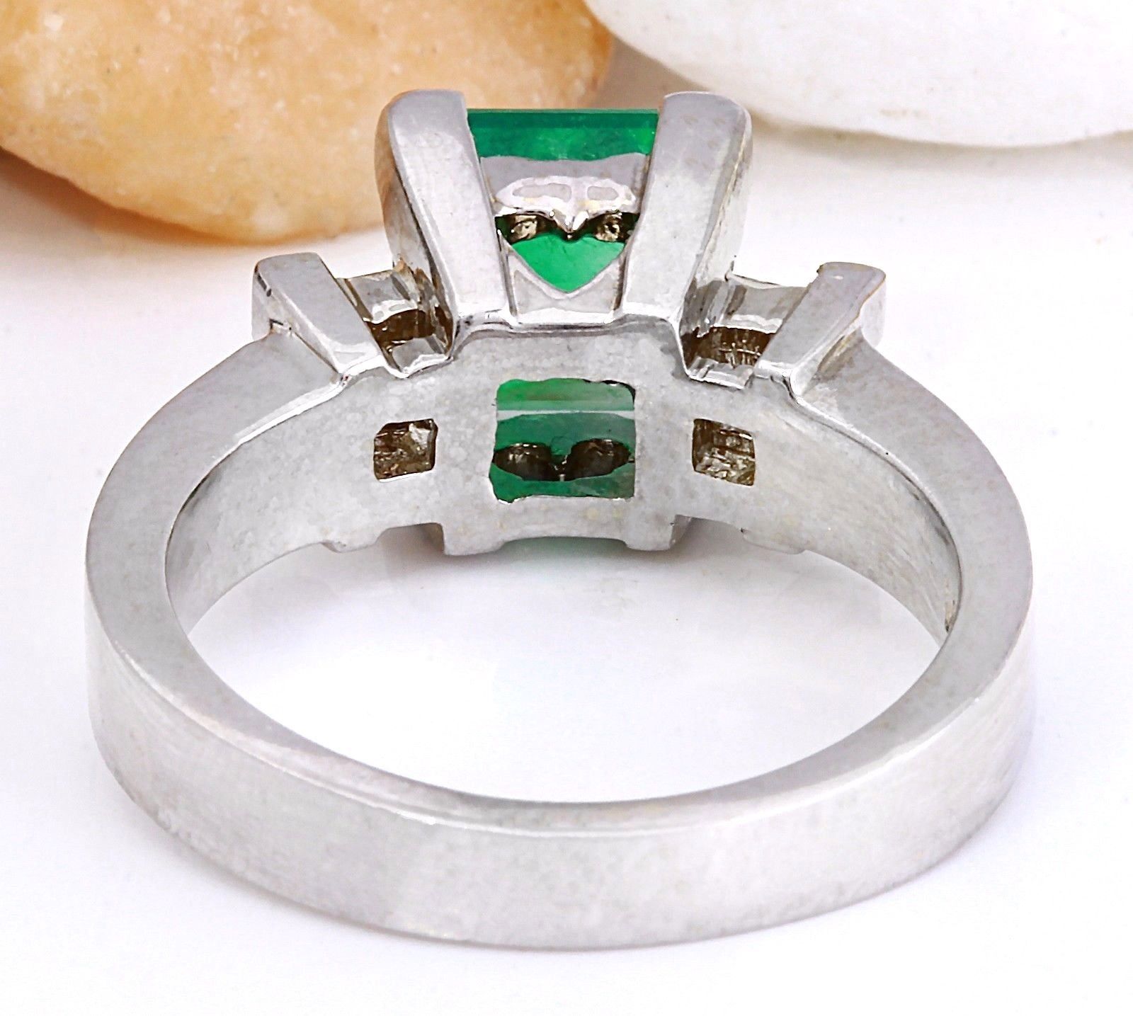 4.00 CTW Natural Emerald 14K Solid White Gold Diamond Ring