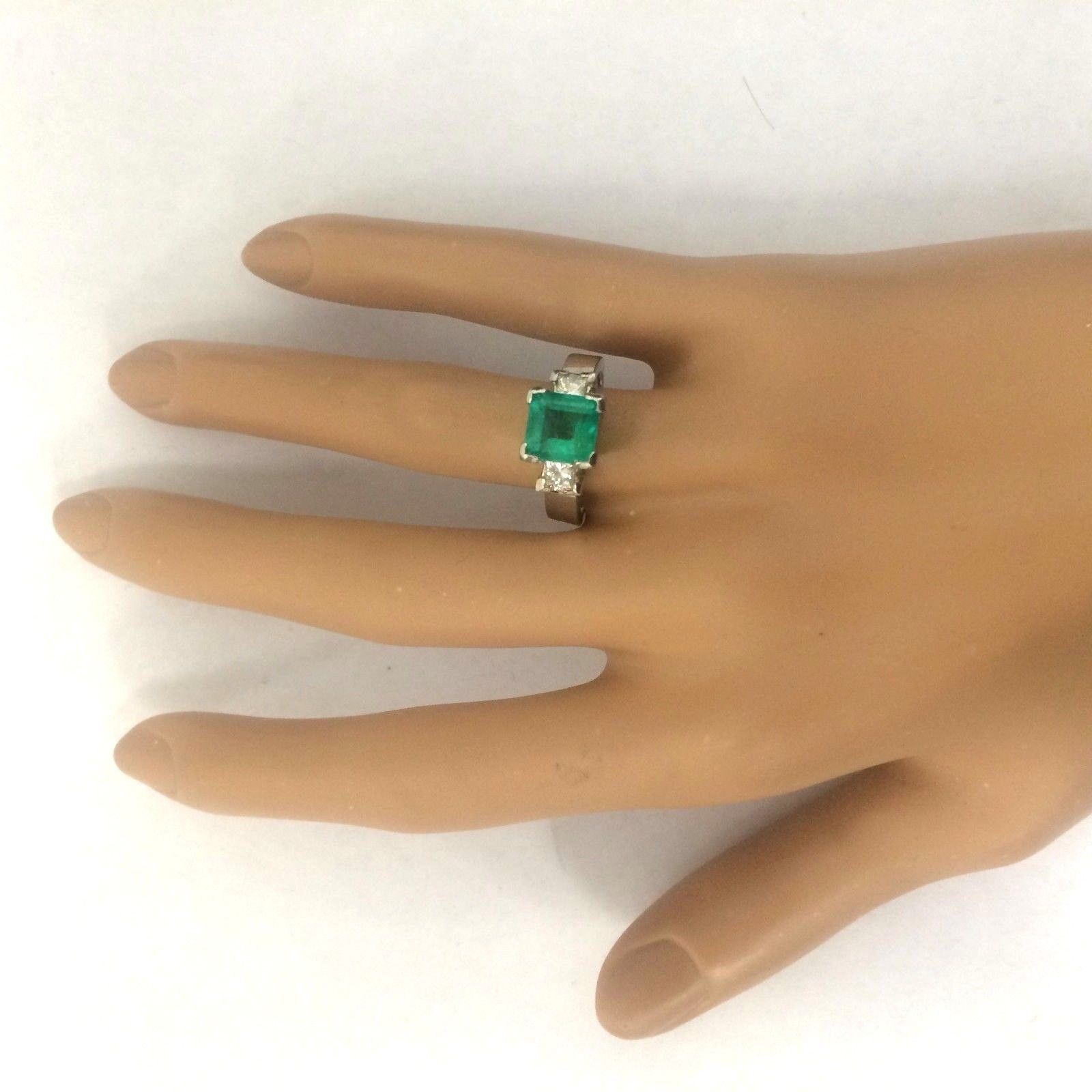 4.00 Carat Natural Emerald 14K Solid White Gold Diamond Ring