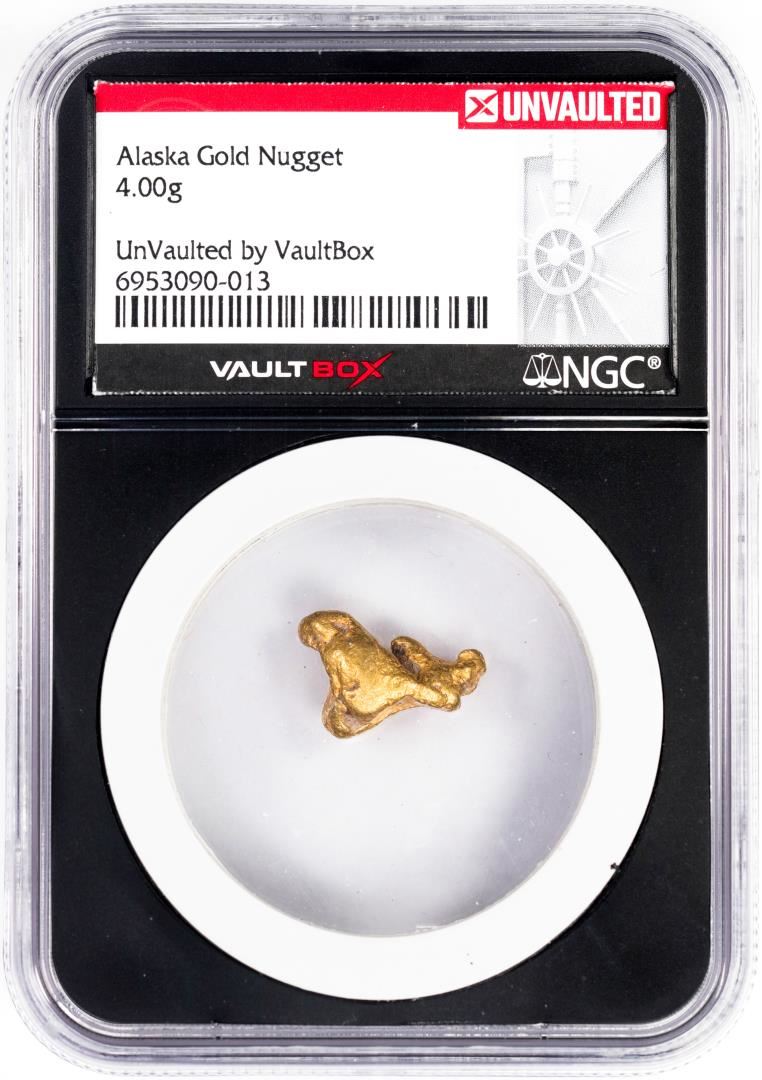 One 4.00 Gram Alaska Gold Nugget NGC Vaultbox Unvaulted. NGC Certified.