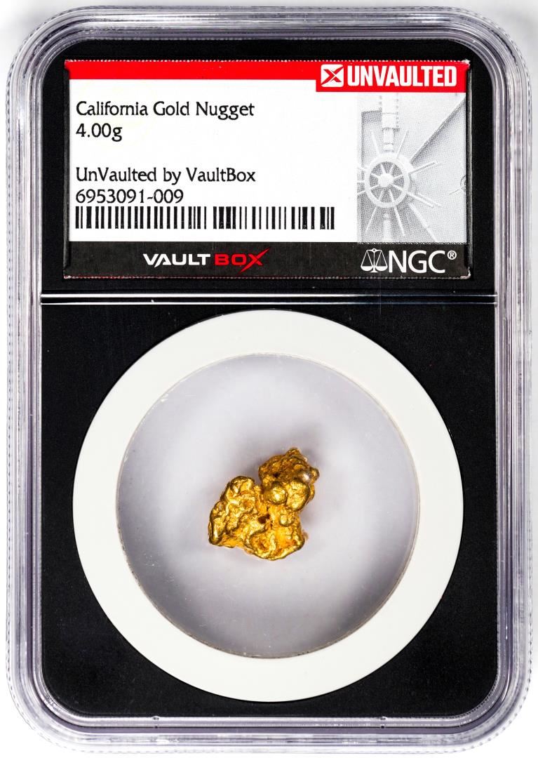 One 4.00 Gram California Gold Nugget NGC Vaultbox Unvaulted. NGC Certified.