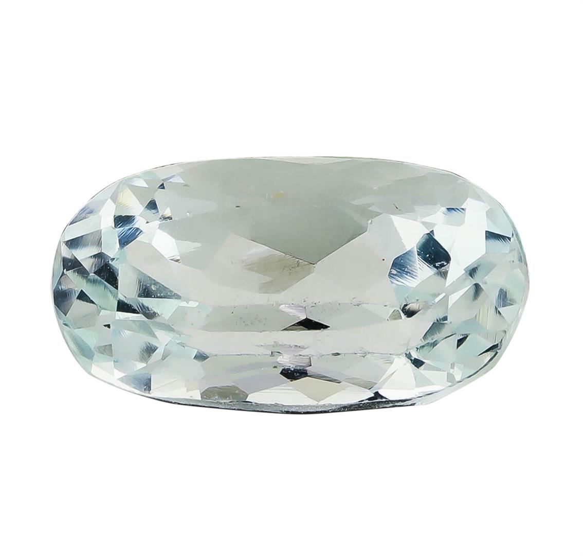 One natural oval cut aquamarine with an exact weight of 4.00ct., clarity is eye clean, slightly grayish greenish blue. Gemological Appraisals Services estimates the retail value at $1520 GAS Appraised.