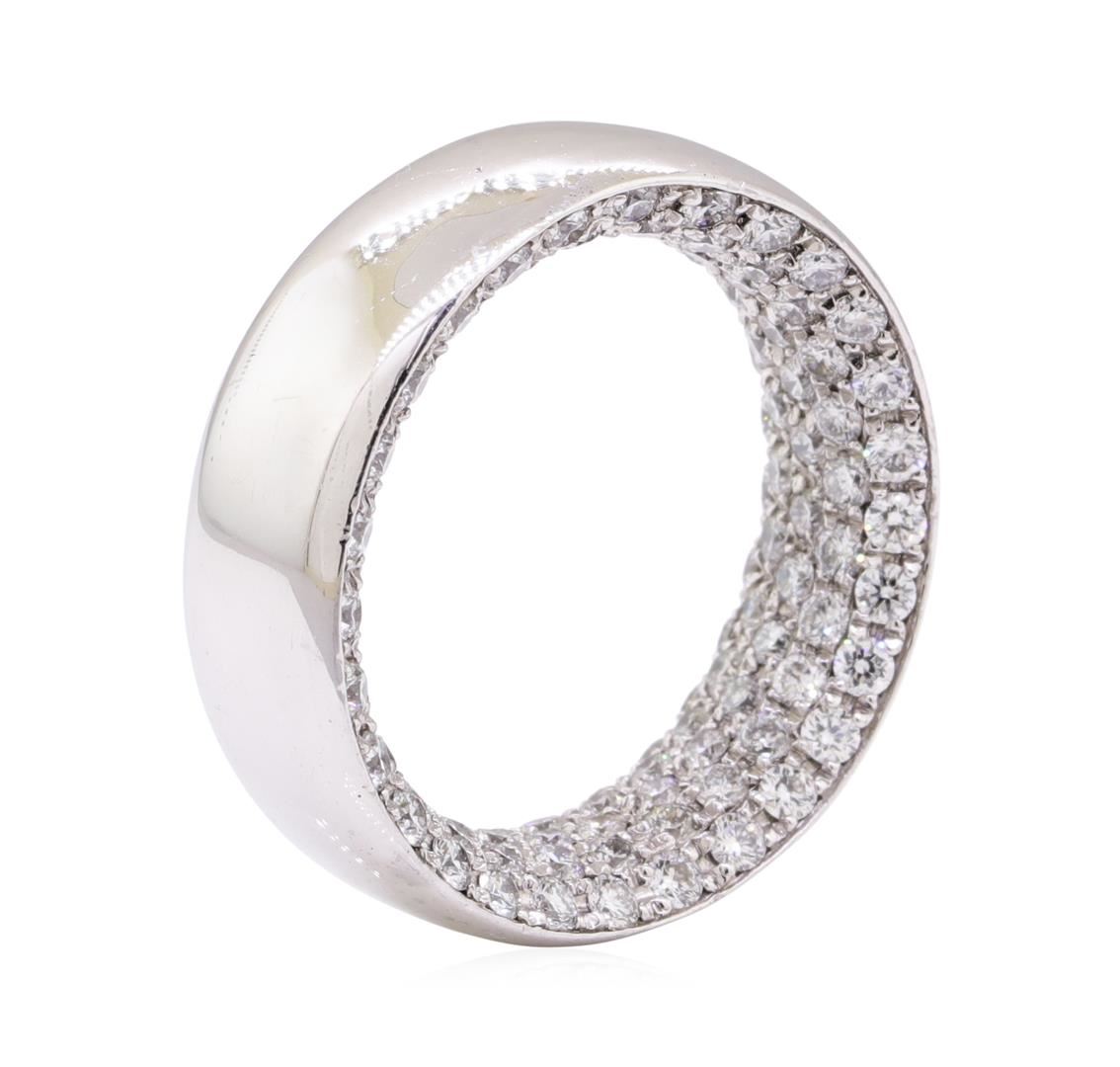 One electronically tested platinum man's cast inside out eternity ring with a bright polish finish. The featured man's ring has a shank measuring 8.00 millimeters wide. Condition is like new, good workmanship. Containing: One Hundred Forty prong set round brilliant cut diamonds, measuring 2.10 - 1.85 x 1.23mm (depth est.) approximate total weight of 140 Stones = 4.00ct. Graded in the setting. Color F - G Clarity VS-1 to VS-2 Cut Very Good. Total Weight of Diamonds 4.00ct.. Total Weight of Ring 22.20gm GAS Appraised at $14285.00. GAS Appraised at $14,285.00.