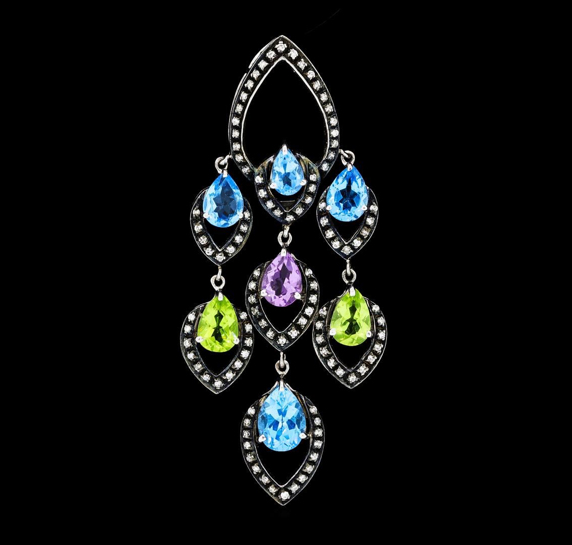 One pendant featuring: 18KT white gold with black antiquing weighing 11.1 grams containing blue topaz, peridot and amethyst weighing 4.00ctw and diamonds weighing 0.50ctw.
