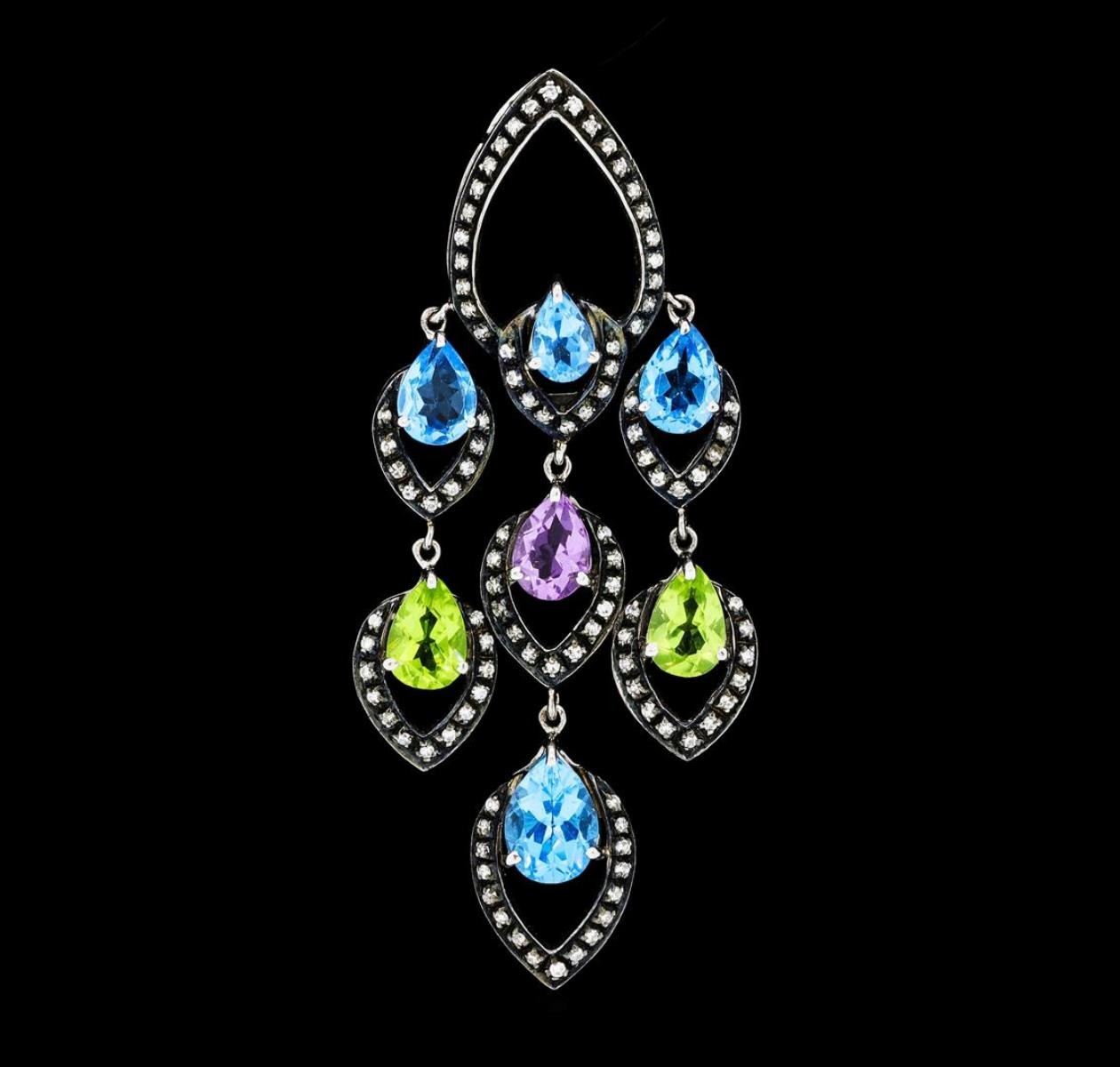 One pendant featuring: 18KT white gold with black antiquing weighing 11.1 grams containing blue topaz, peridot and amethyst weighing 4.00ctw and diamonds weighing 0.50ctw.