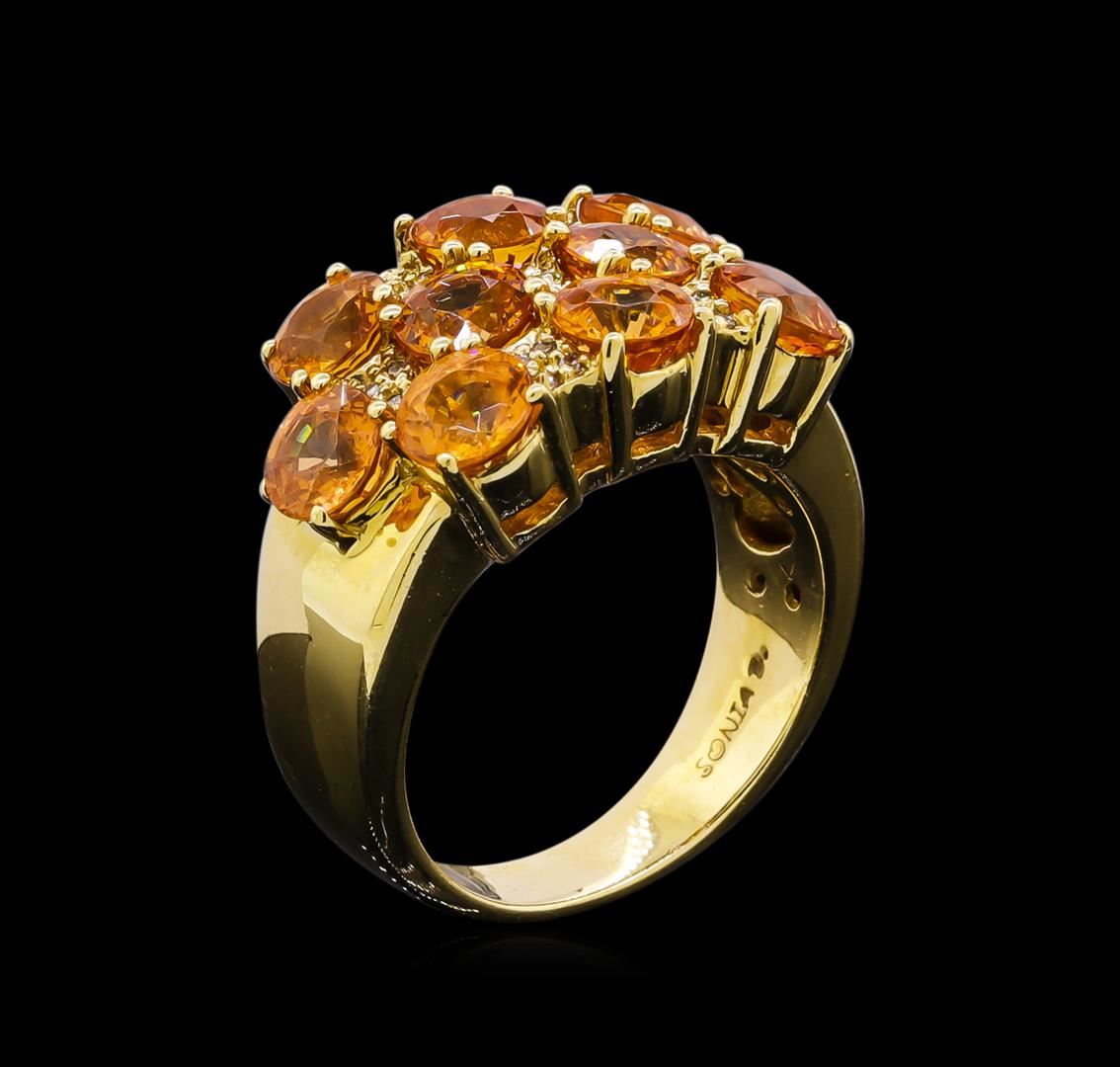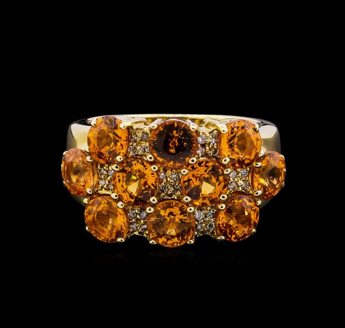 One ring featuring: 14KT yellow gold weighing 11.76 grams containing one orange sapphires with a total weight of 4.00ct and side diamonds with a total weight of 0.03ct.