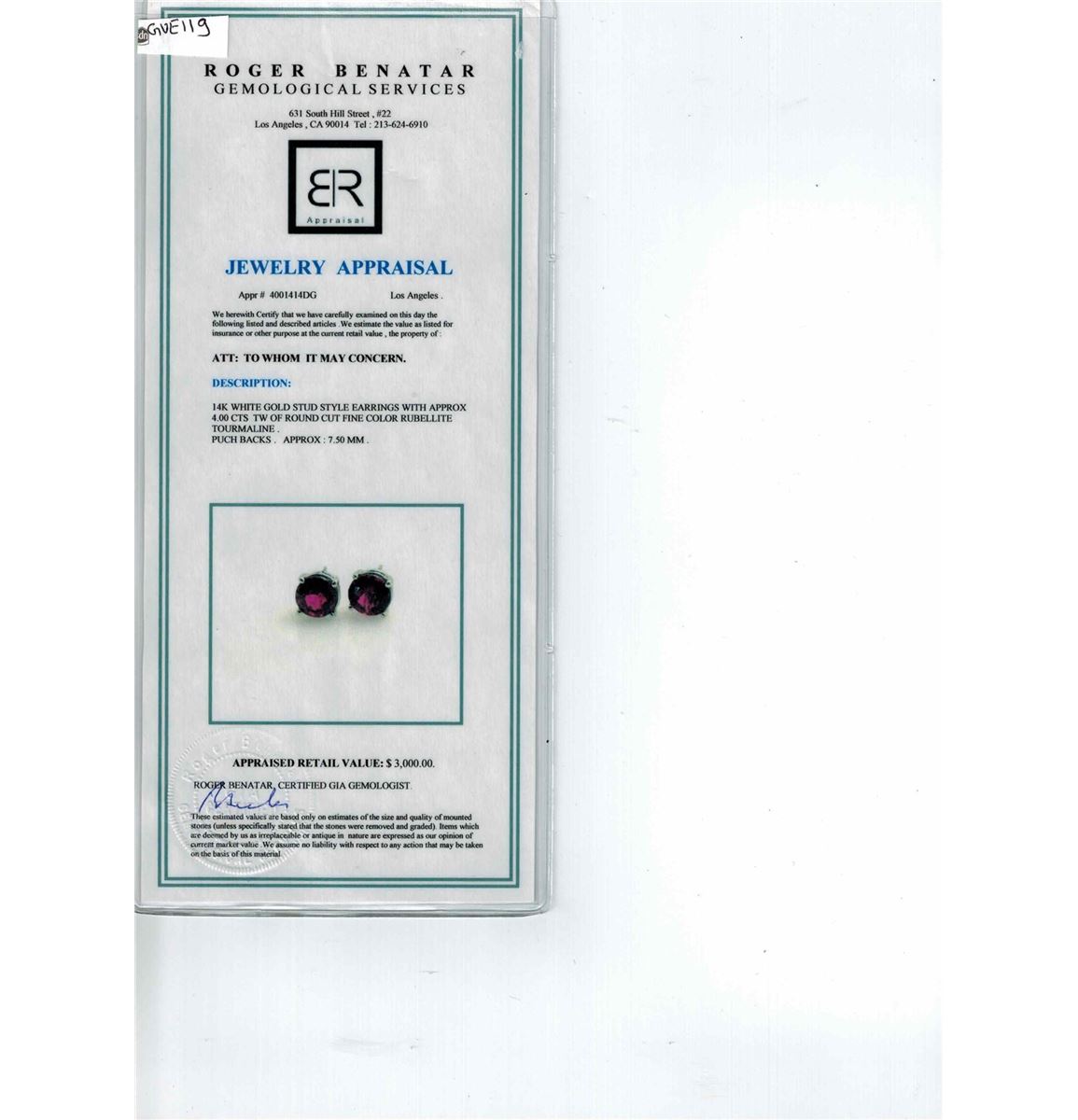 14K WHITE GOLD NATURAL RUBELLITE EARRING/RUBELLITE:4.00CT ABOUT/#GVE1119