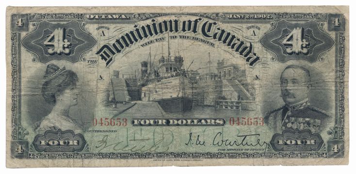 Jan. 2, 1902. DC-17a. Courtney. Large ‘4’s. No. 045653/A. PMG graded FINE-12 Net. Internal tears.