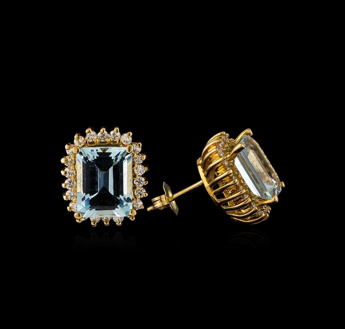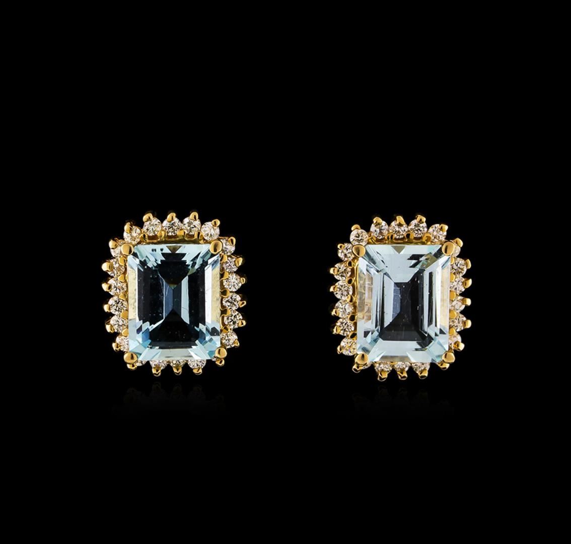 One pair of earrings featuring: 14KT yellow gold weighing 5.10 grams containing two aquamarines with an approximate total weight of 4.00ct and diamonds with an approximate total weight of 0.54ct.