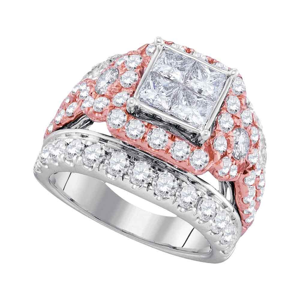 REF-424X3Y- SKU: GD96560 ---- 4.01 CTW Princess Diamond Cluster Bridal Engagement Ring 14KT Two-tone Gold