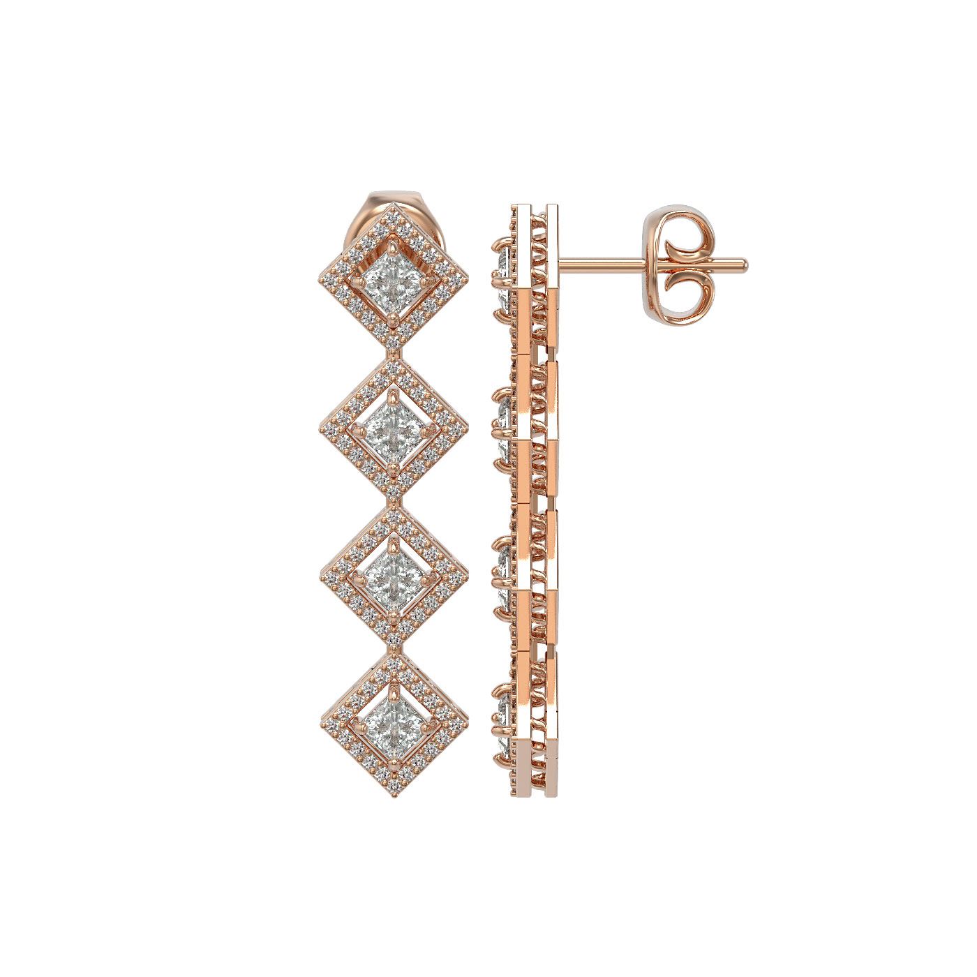 SKU: 42972 ---- 4.01 ctw Princess Cut Diamond Micro Pave Earrings 18K Rose Gold