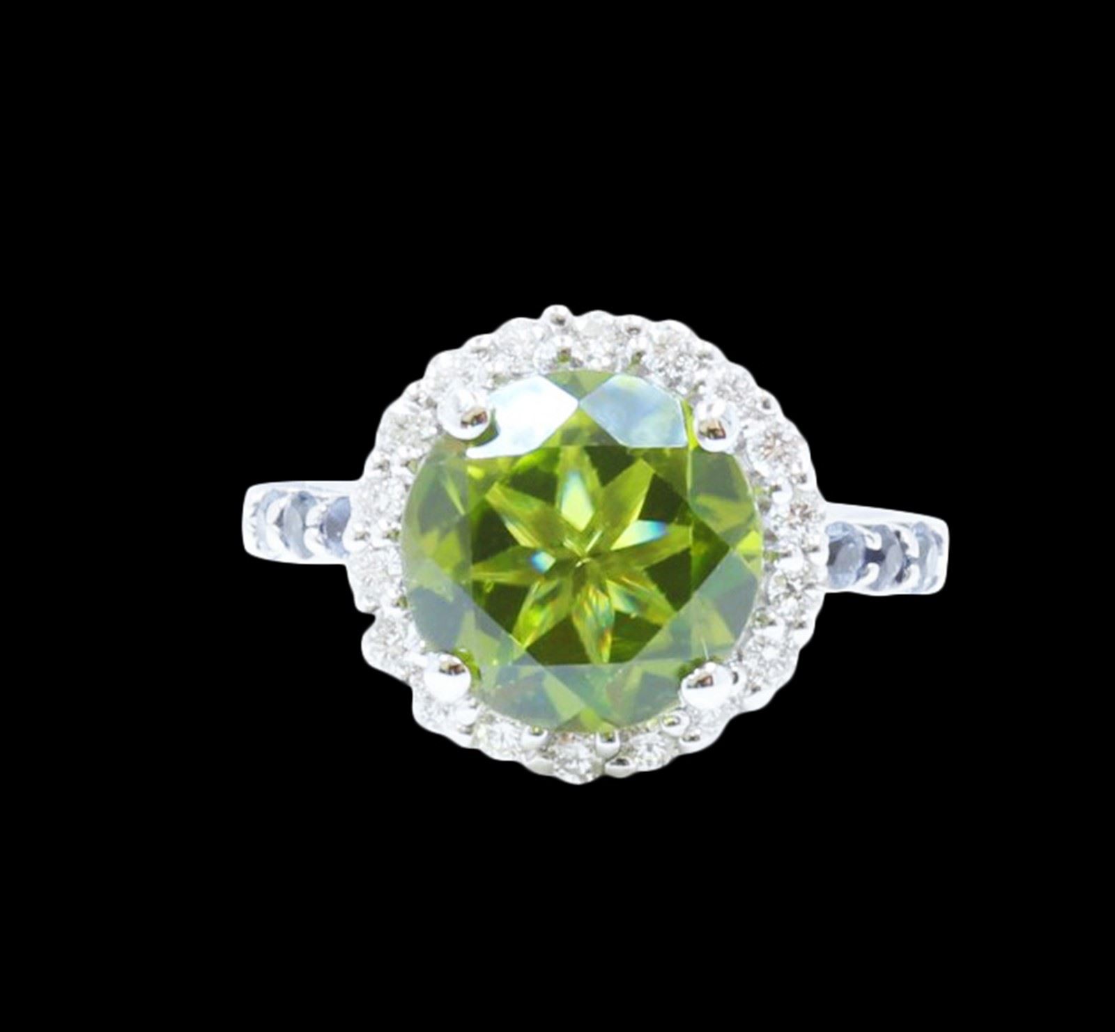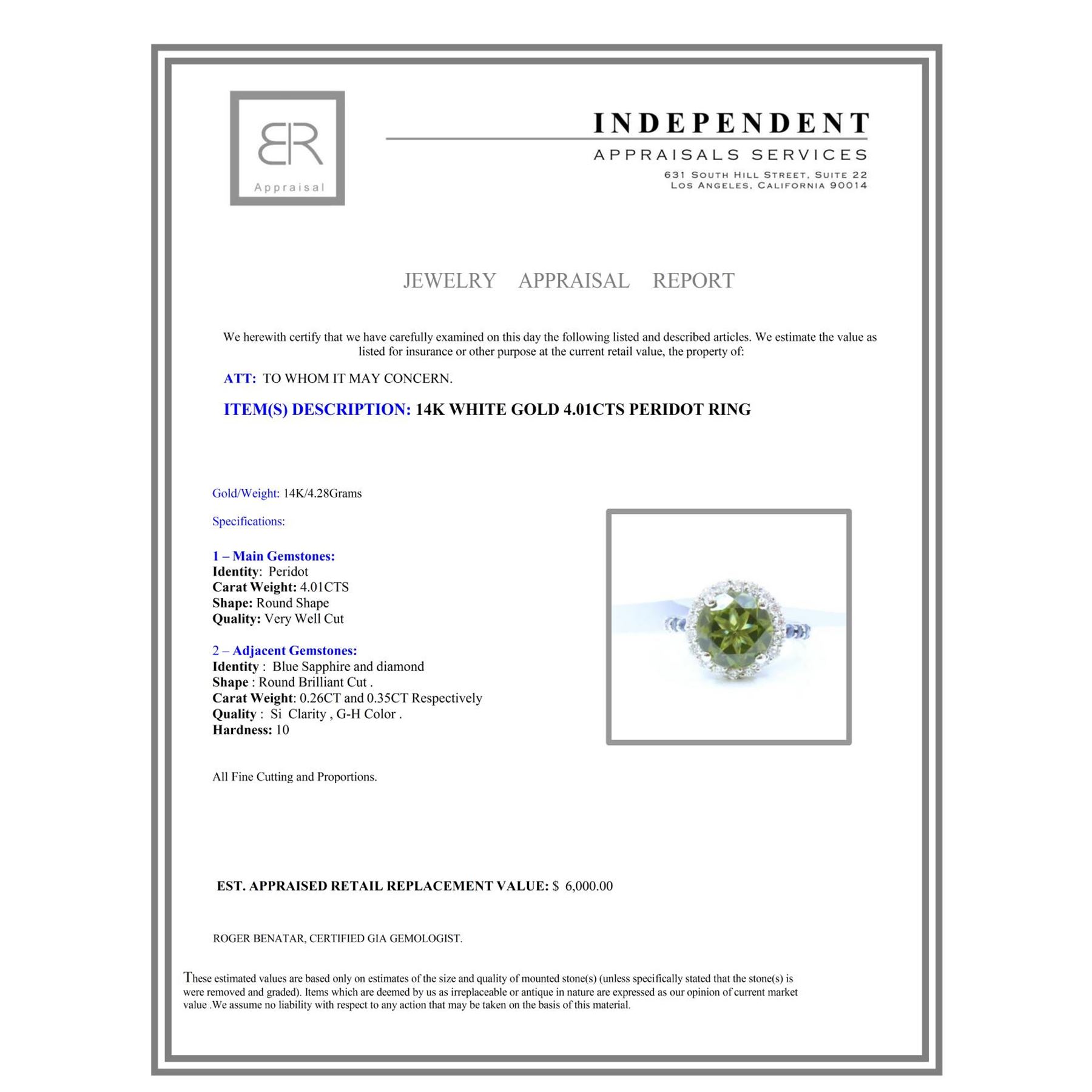 14K W/G NATURAL BURMA PERIDOT RING :4.28GR/DIA :0.35CT/BLUE SAPP: 0.26CT/BURMA PERIDOT :4.01CT/#GVR1401