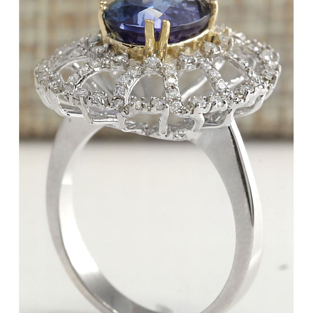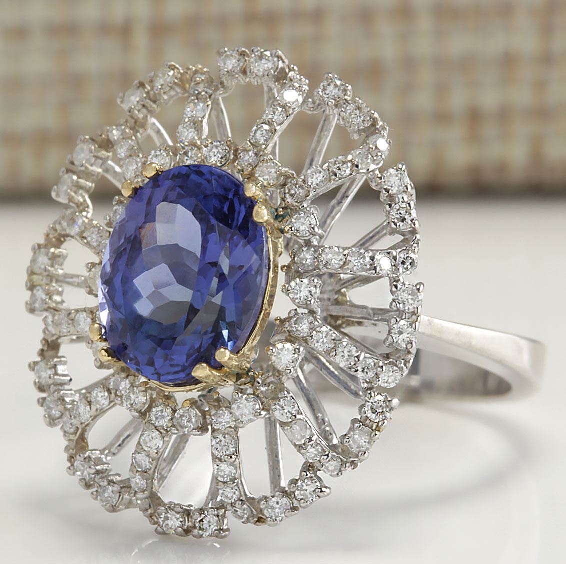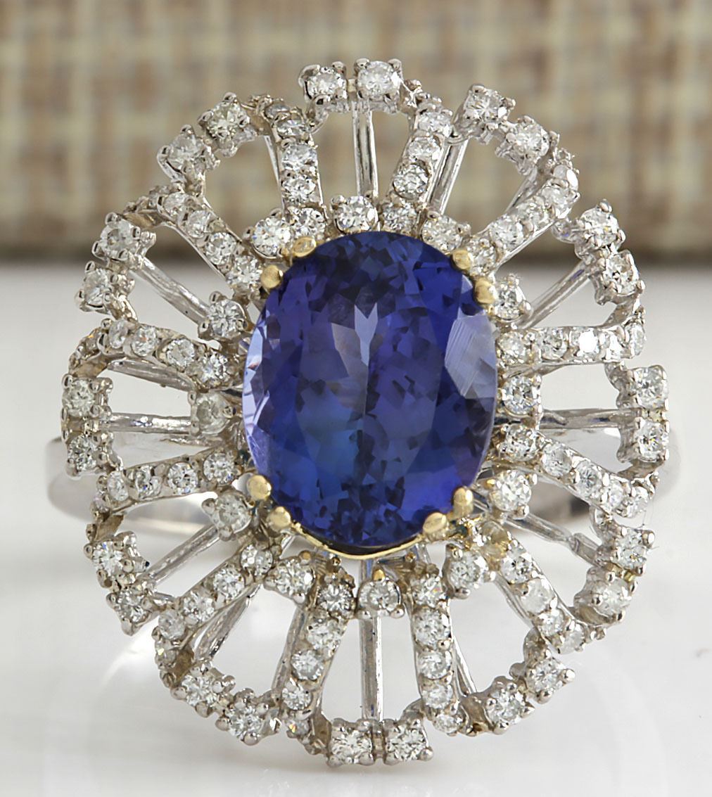 4.02 CTW Natural Blue Tanzanite And Diamond Ring 18K Solid White Gold