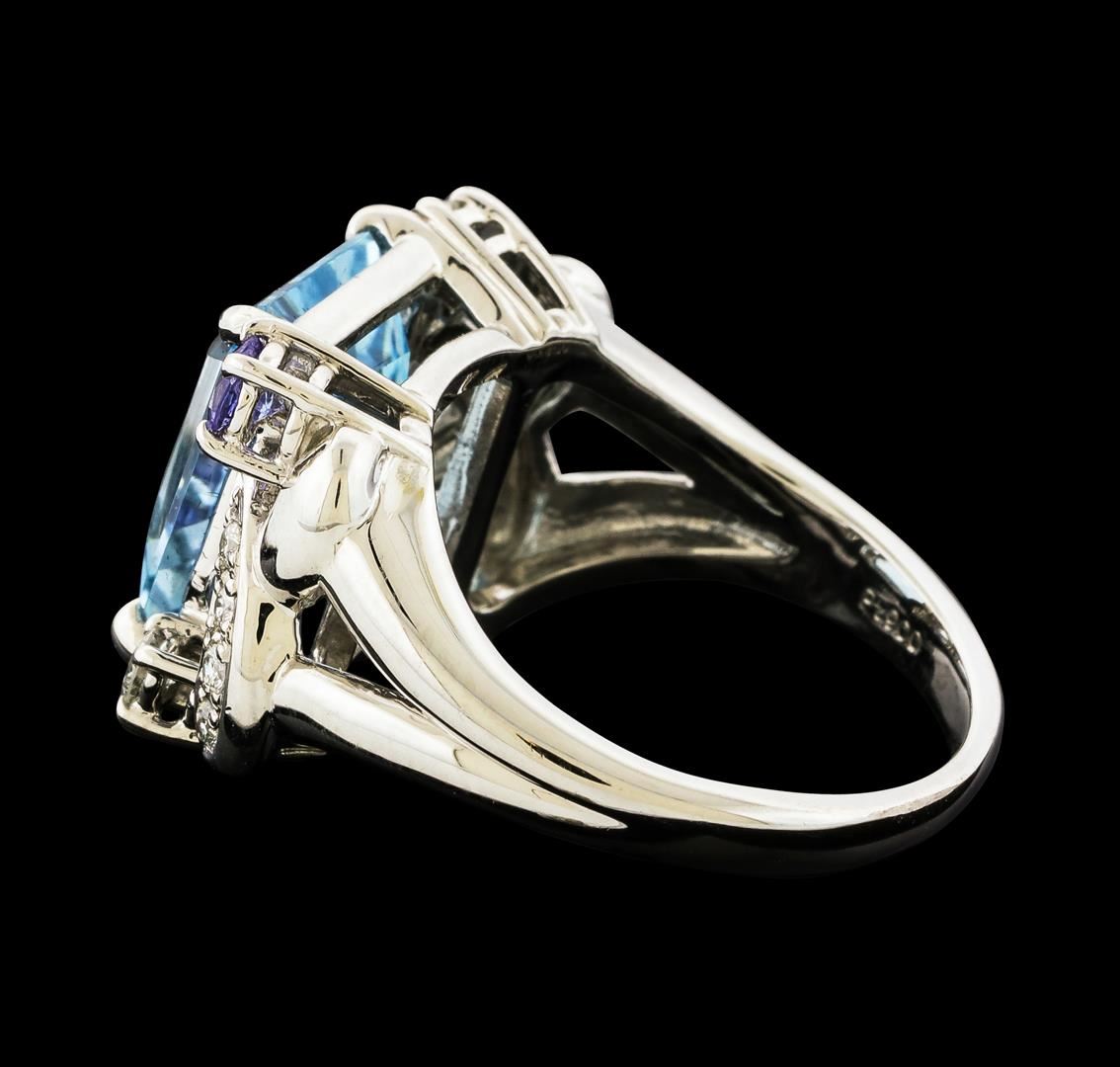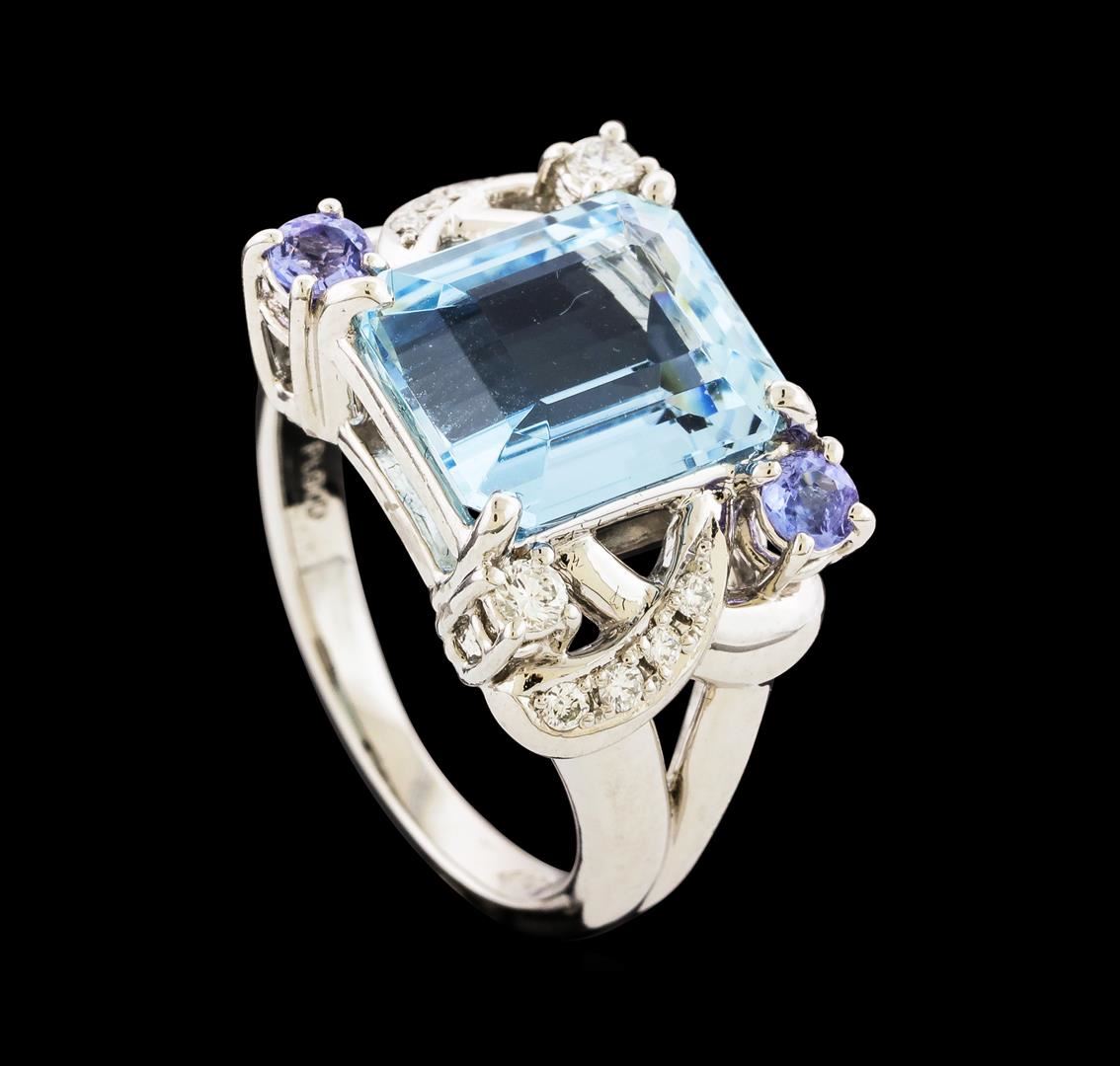 One ring featuring: Platinum containing Aquamarine with a total weight of 4.02ct and Diamonds with a total weight of 0.15ct. Total Weight of Ring: 10.7 grams.