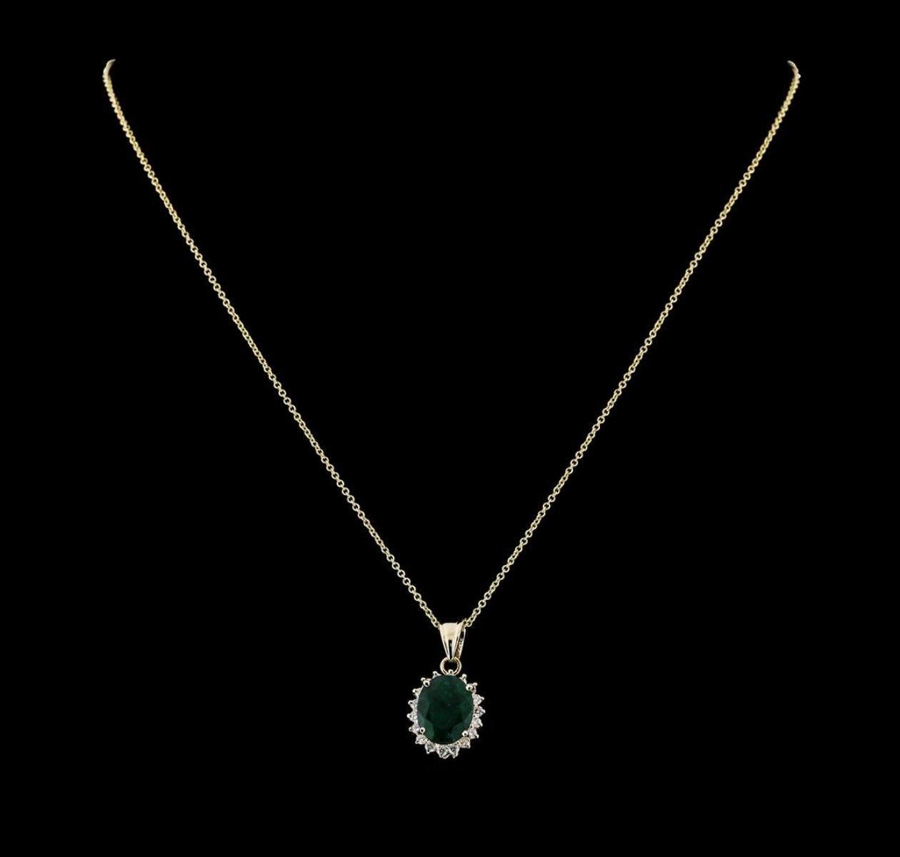 One pendant with chain : 14KT yellow gold weighing 2.88gm featuring emerald with a total weight of 4.02ct and diamonds weighing 0.37ctw.