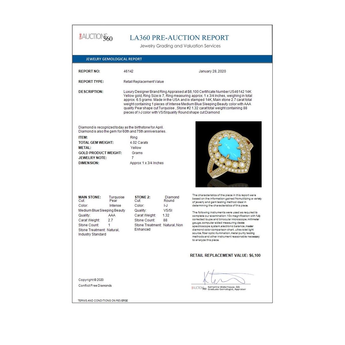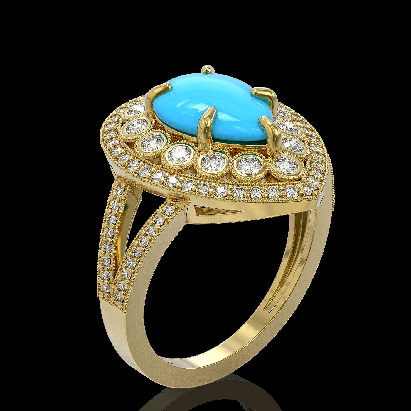 REF-123H6R - SKU: 46142 ---- 4.02 ctw Turquoise & Diamond Victorian Ring 14K Yellow Gold