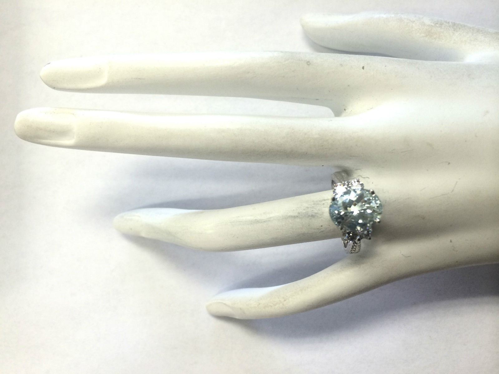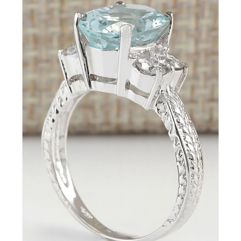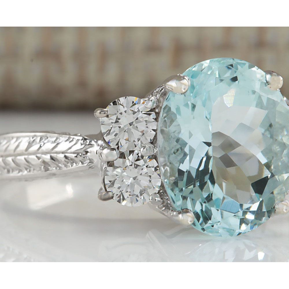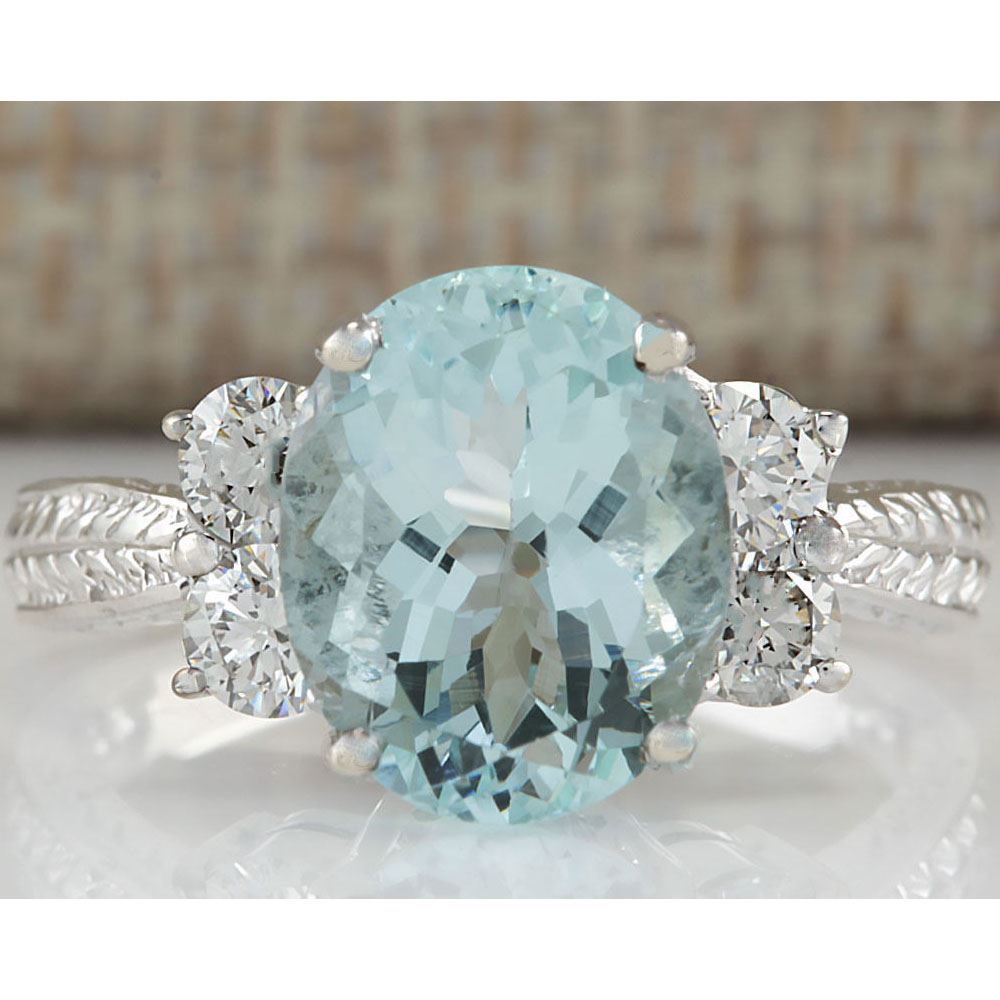 4/03 CTW Natural Blue Aquamarine Diamond Ring 14k Solid White Gold