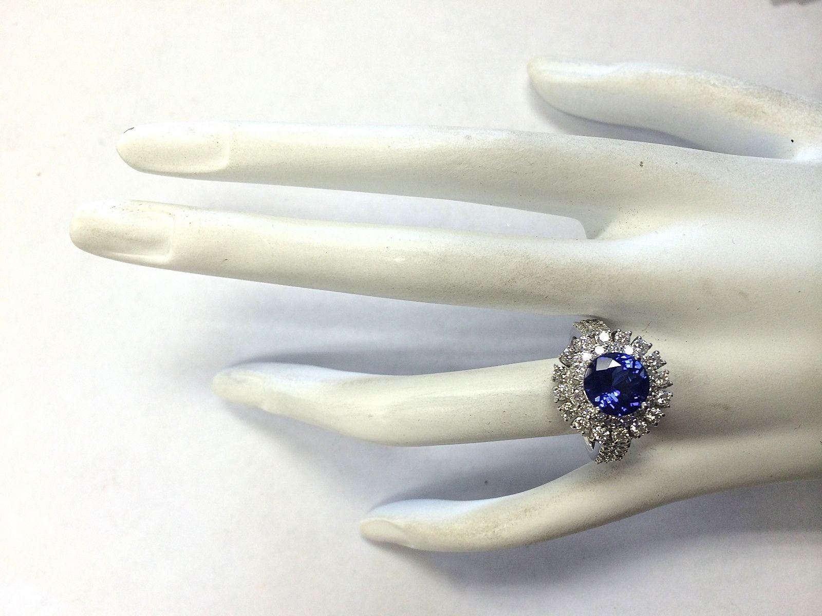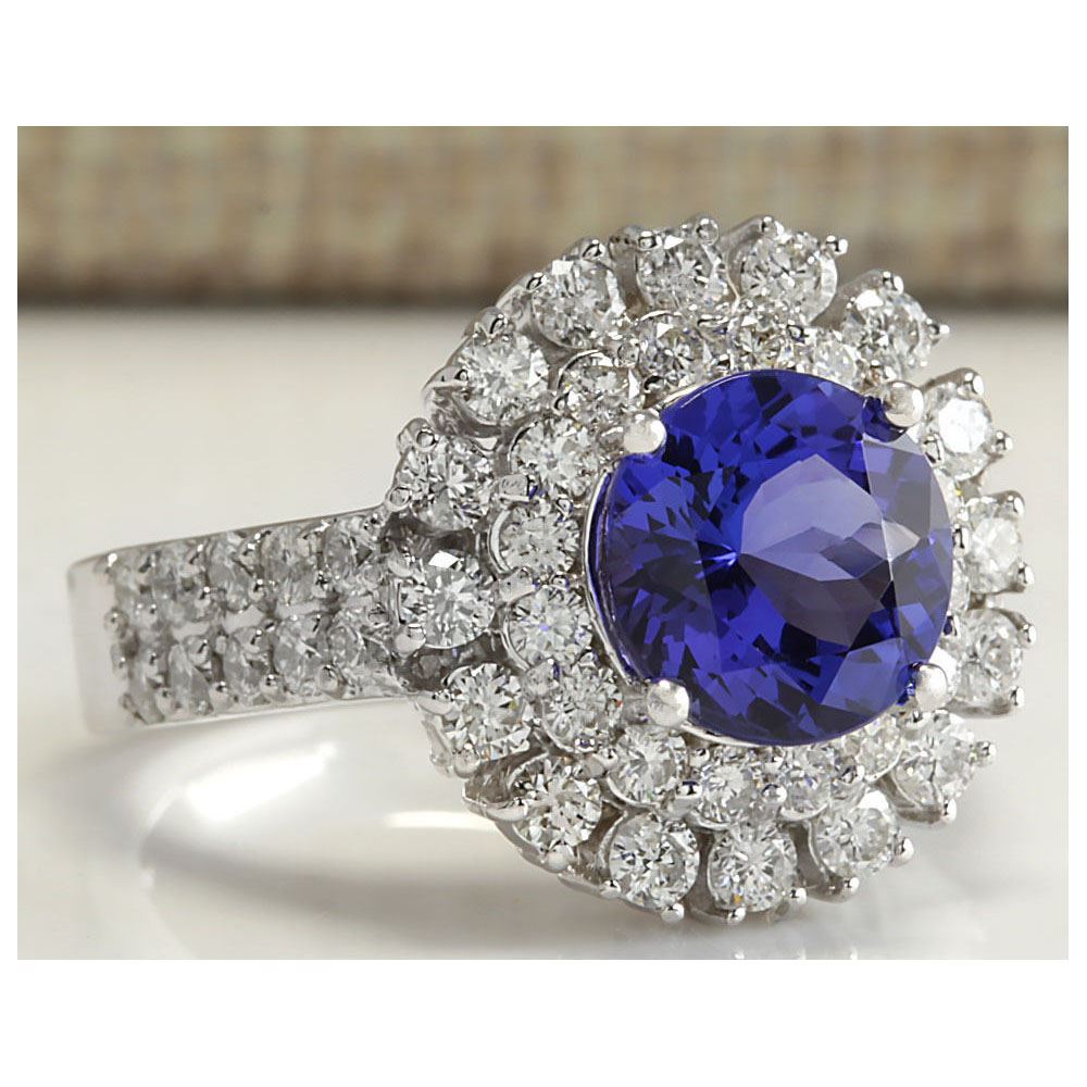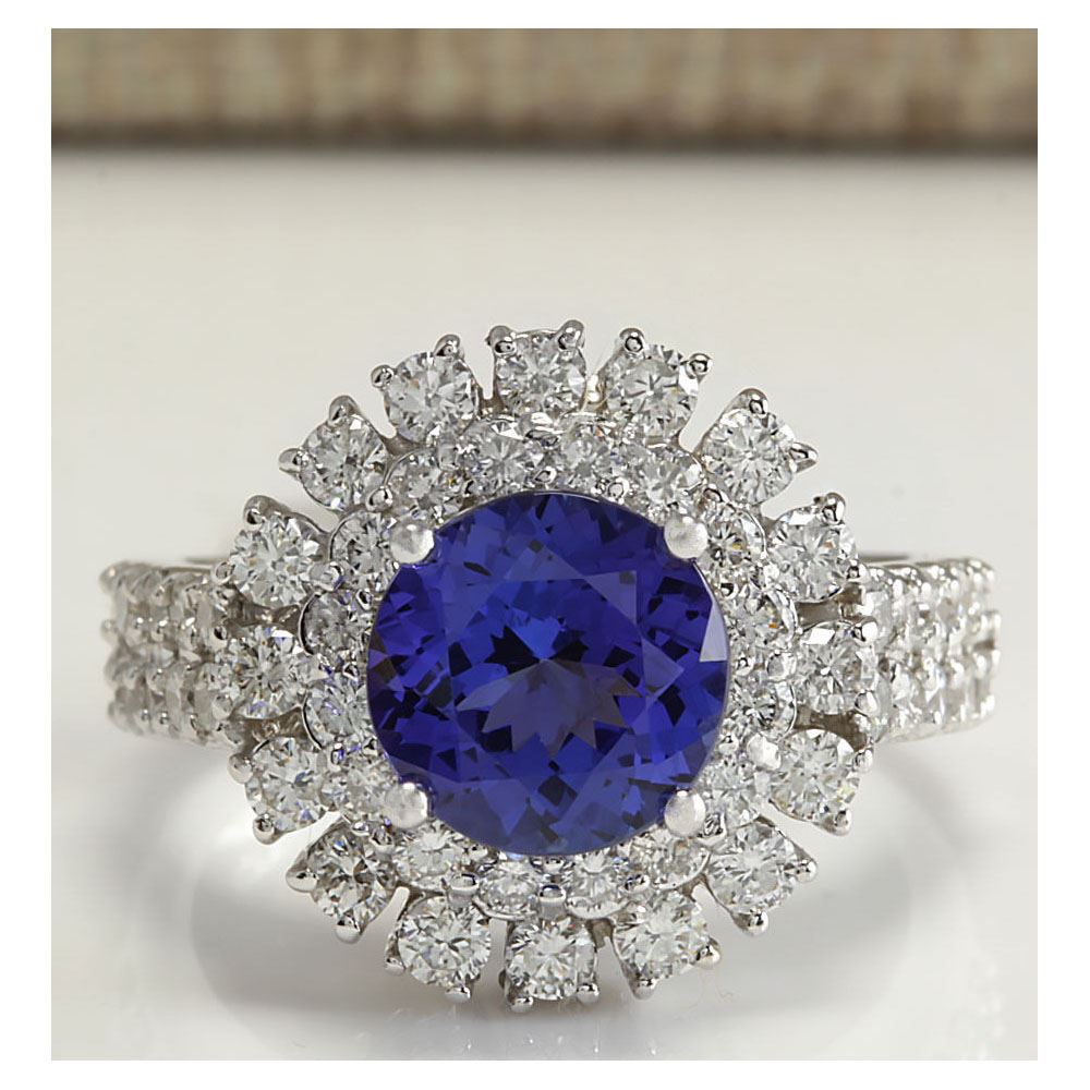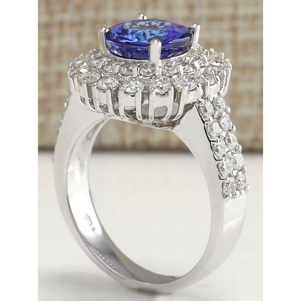 4.03 CTW Natural Blue Tanzanite And Diamond Ring In 18K White Gold
