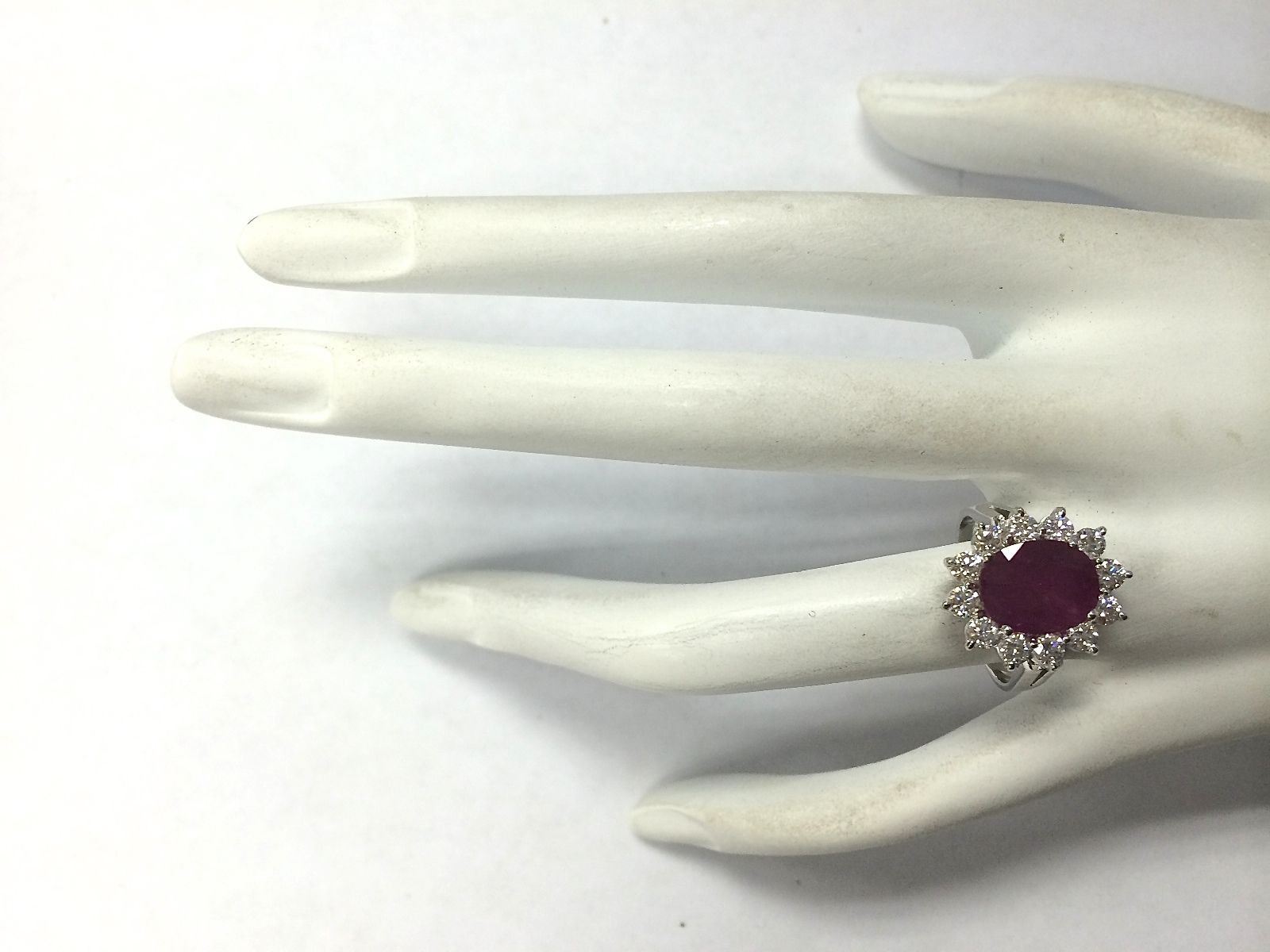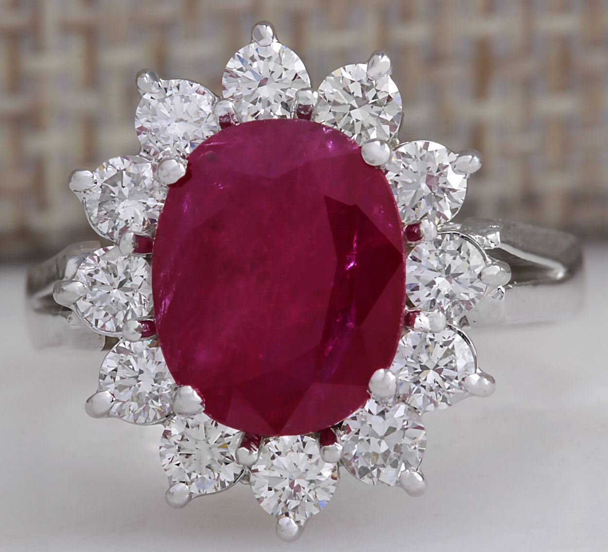 4.03 CTW Natural Red Ruby Diamond Ring 14K Solid White Gold