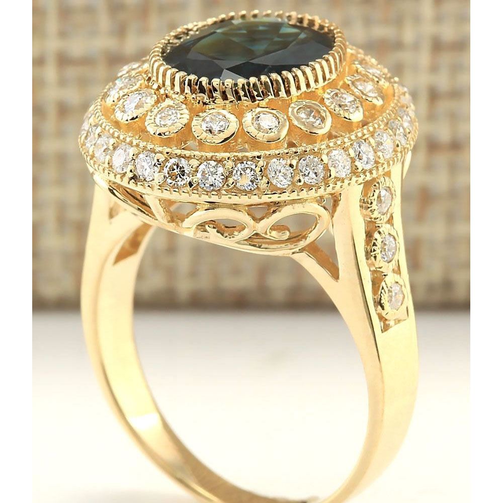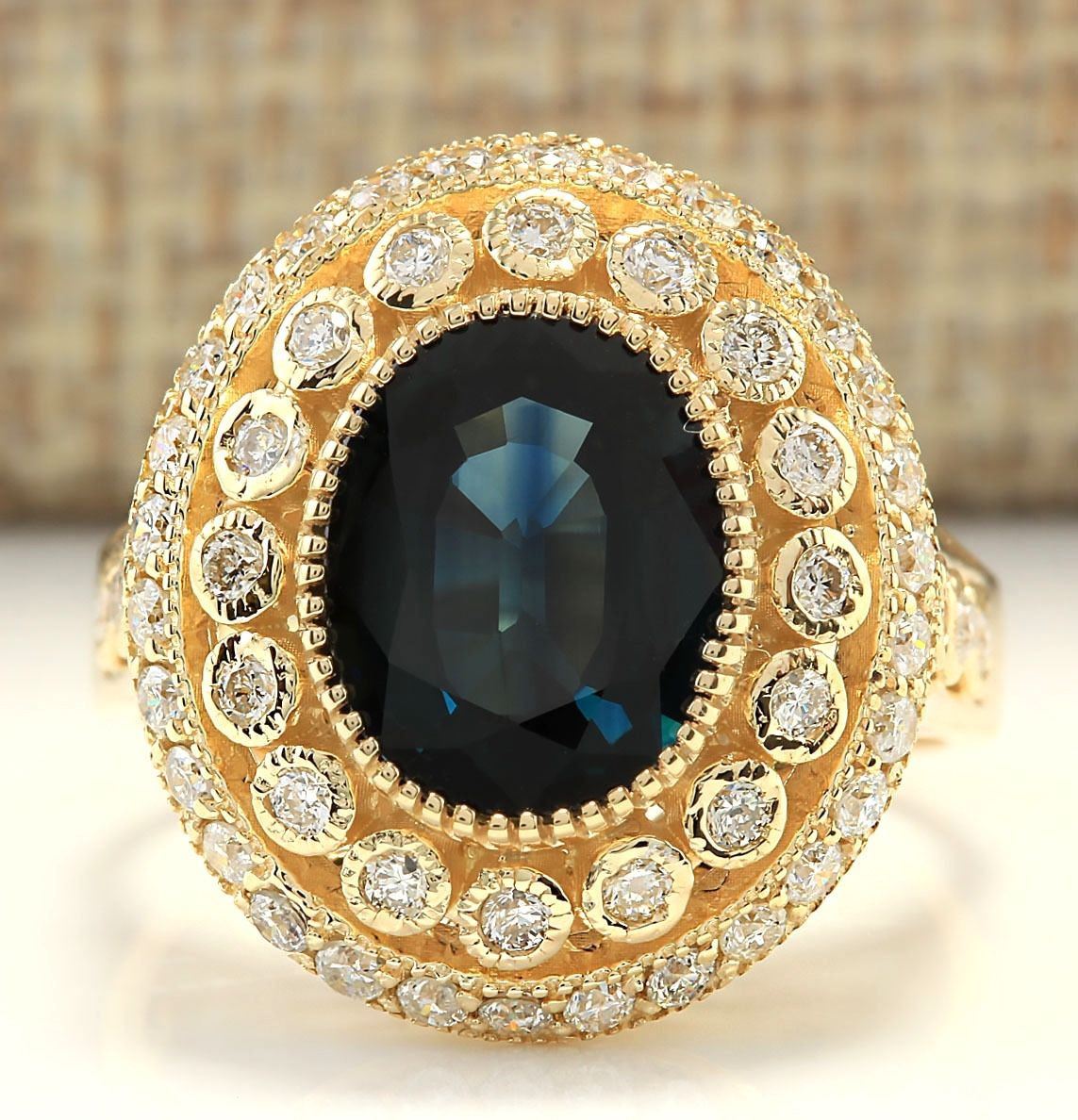 4.03 CTW Natural Sapphire And Diamond Ring In 18K Yellow Gold