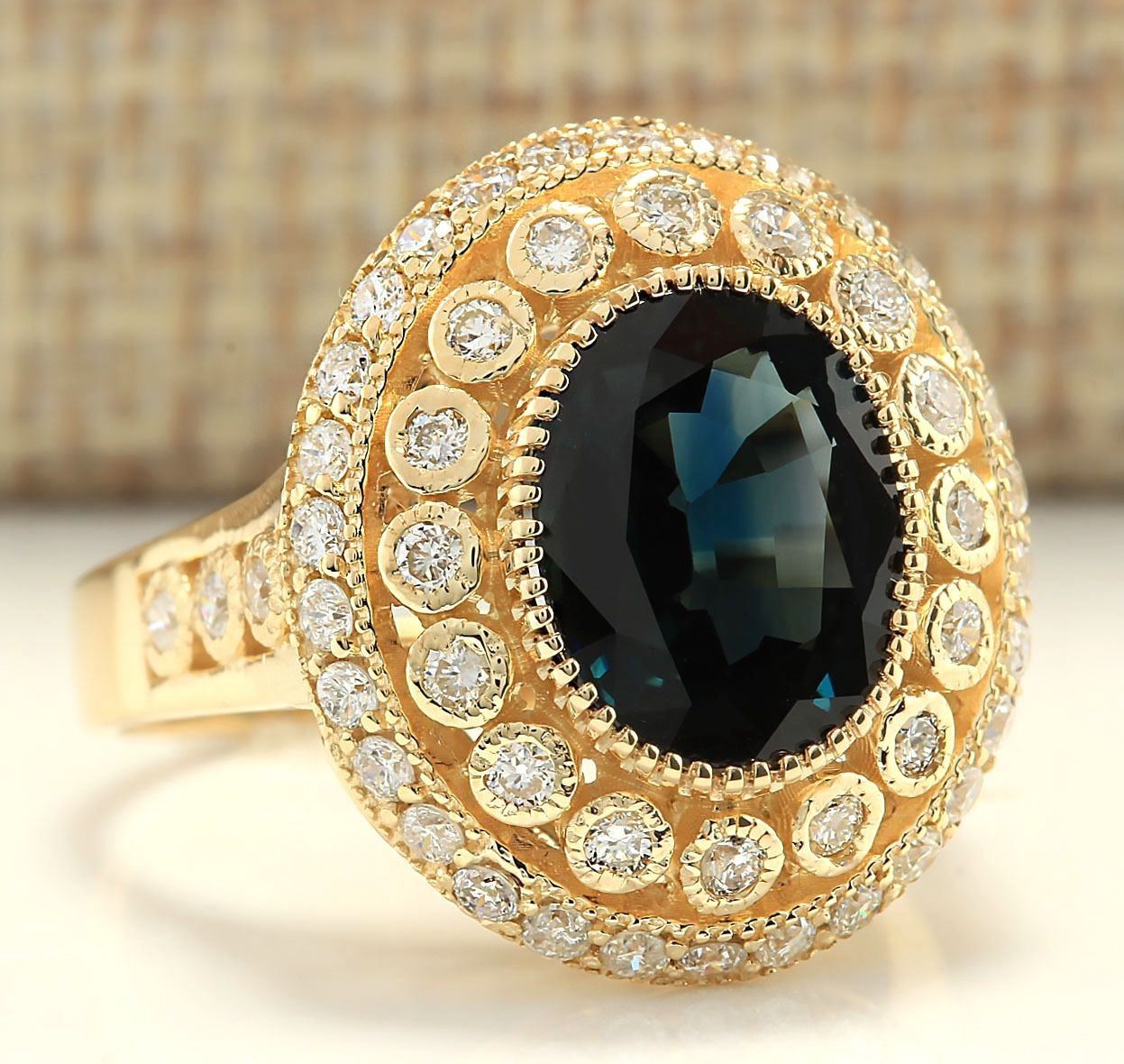 4.03 CTW Natural Sapphire And Diamond Ring In 18K Yellow Gold
