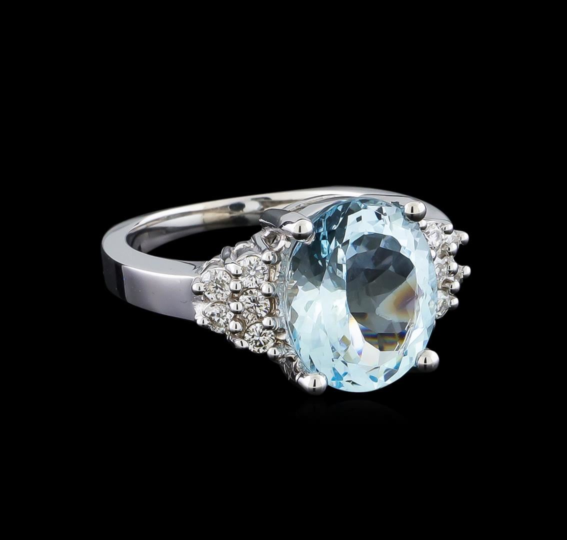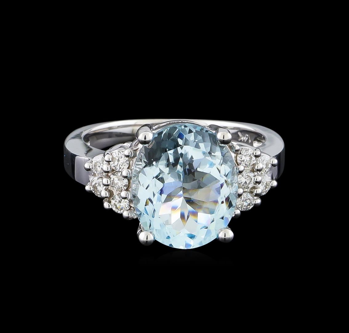 One Ring featuring: 14KT White Gold weighing 5.44 grams containing one Aquamarine center stone with a total weight of 4.03ct and Diamonds with a total weight of 0.27ct.