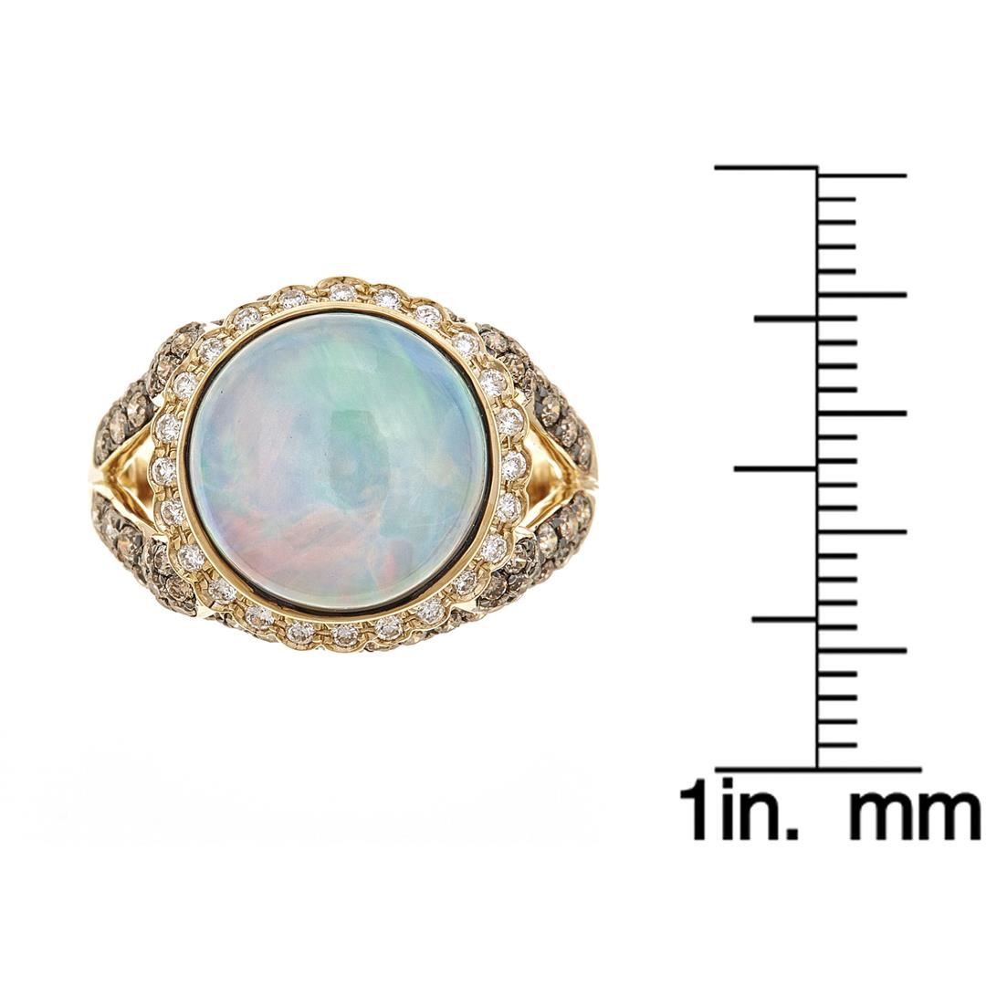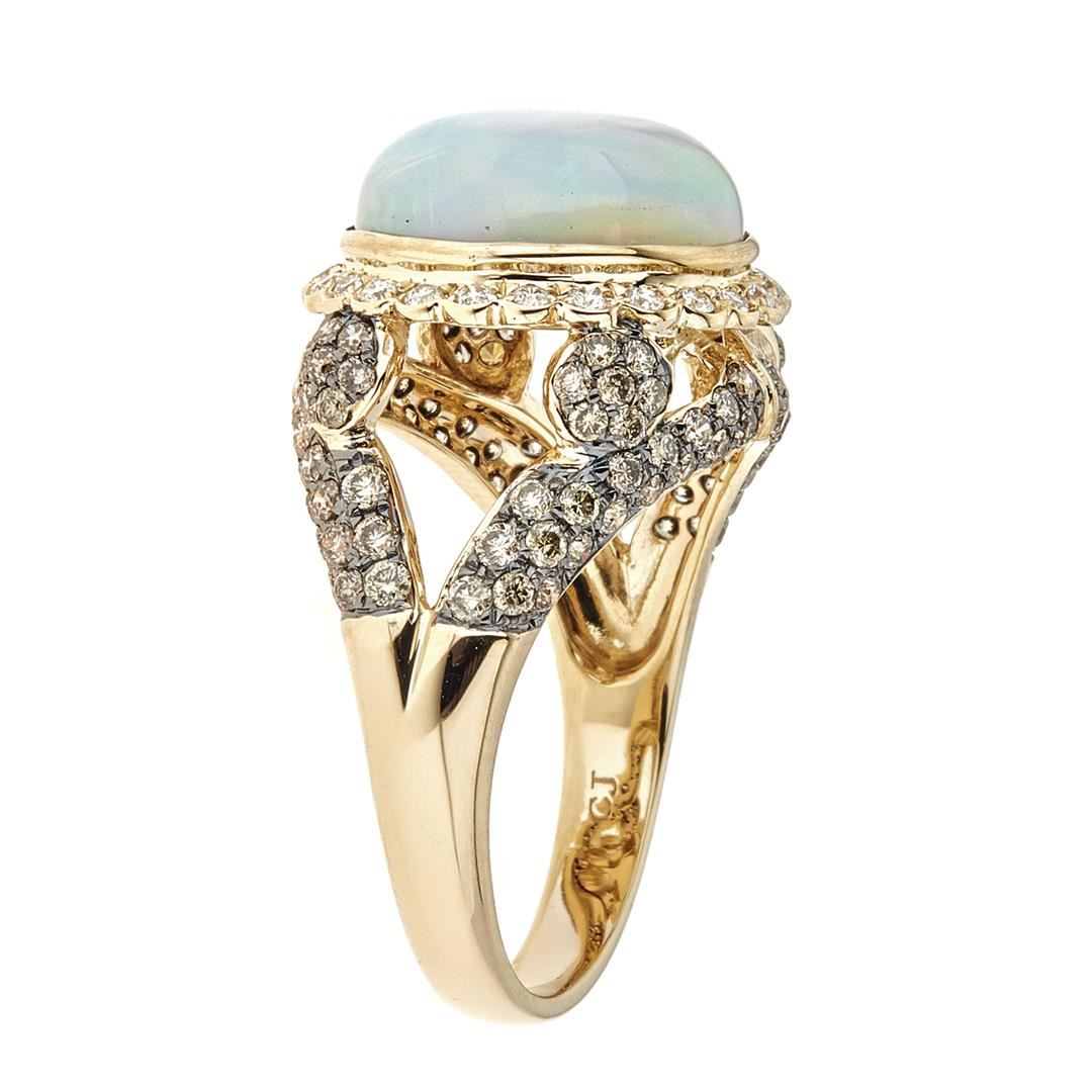 One lady's ring featuring: 14KT yellow gold weighing 6.21 grams containing one ethiopian opal weighing 4.03ct and diamonds weighing 1.21ctw.